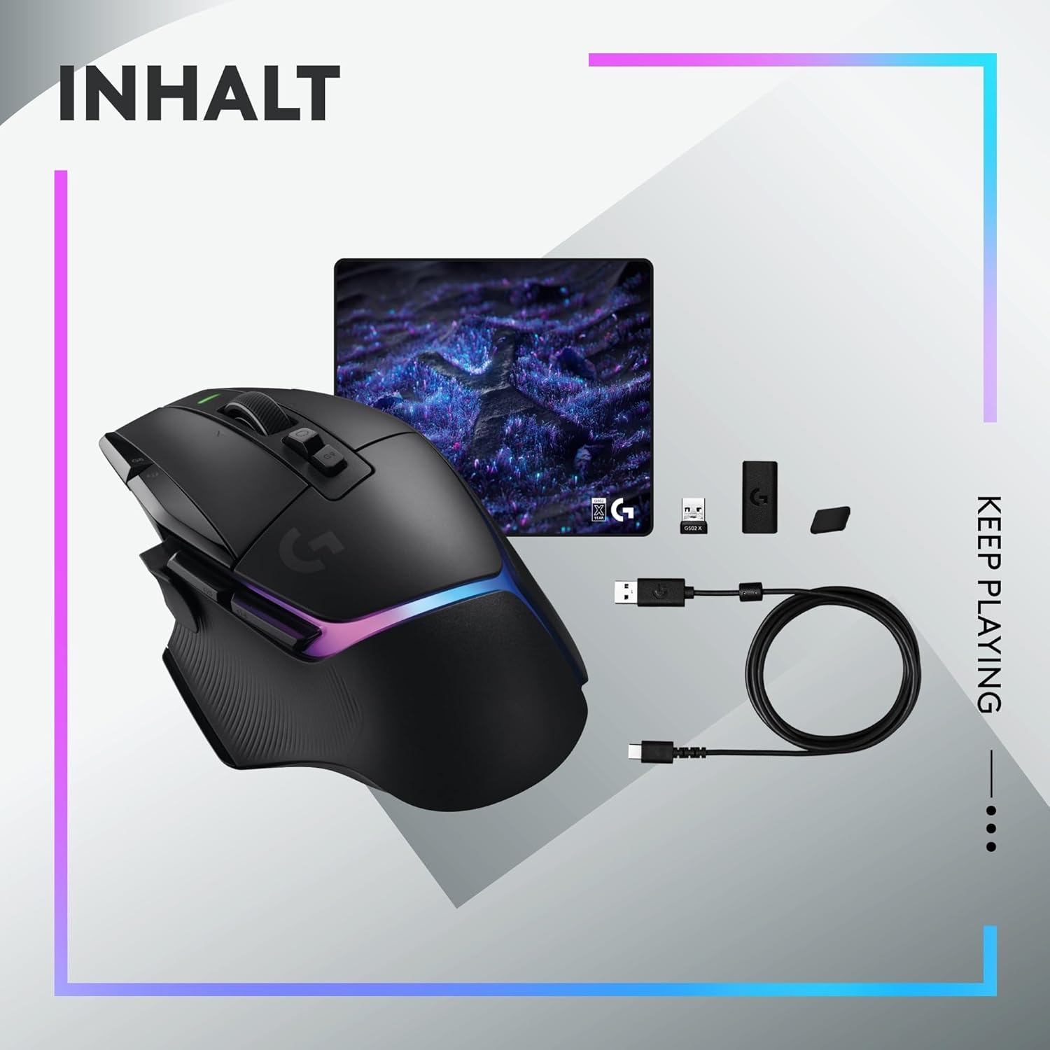Logitech G G502 X PLUS LIGHTSPEED + G640 SE COMBO - Безжична RGB геймърска мишка и голяма текстилна подложка за мишка (460 x 400 x 3 мм) - Черна
