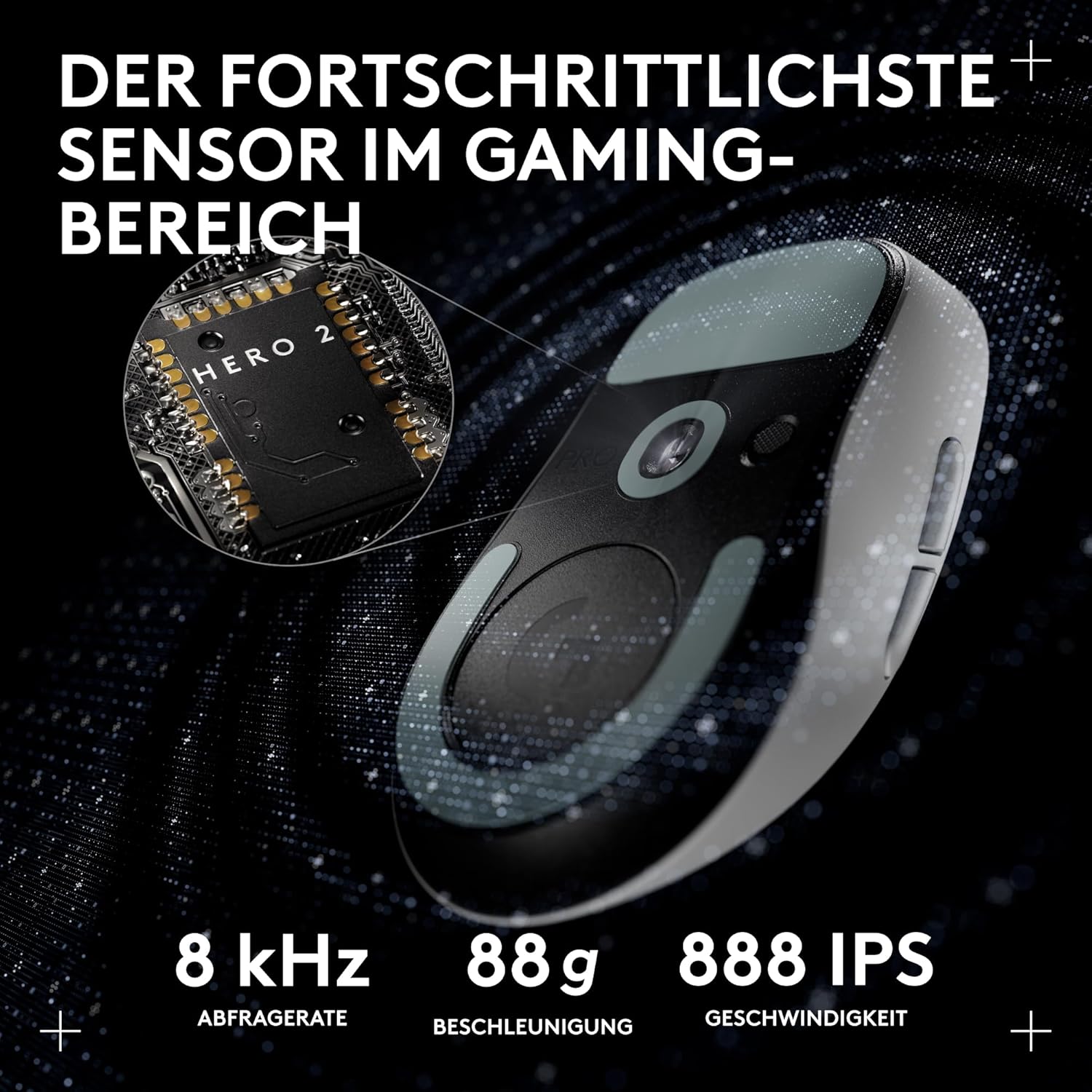 Изпитайте професионална прецизност със сензора HERO 2 с над 888 IPS, 88G и до 44 000 DPI.
