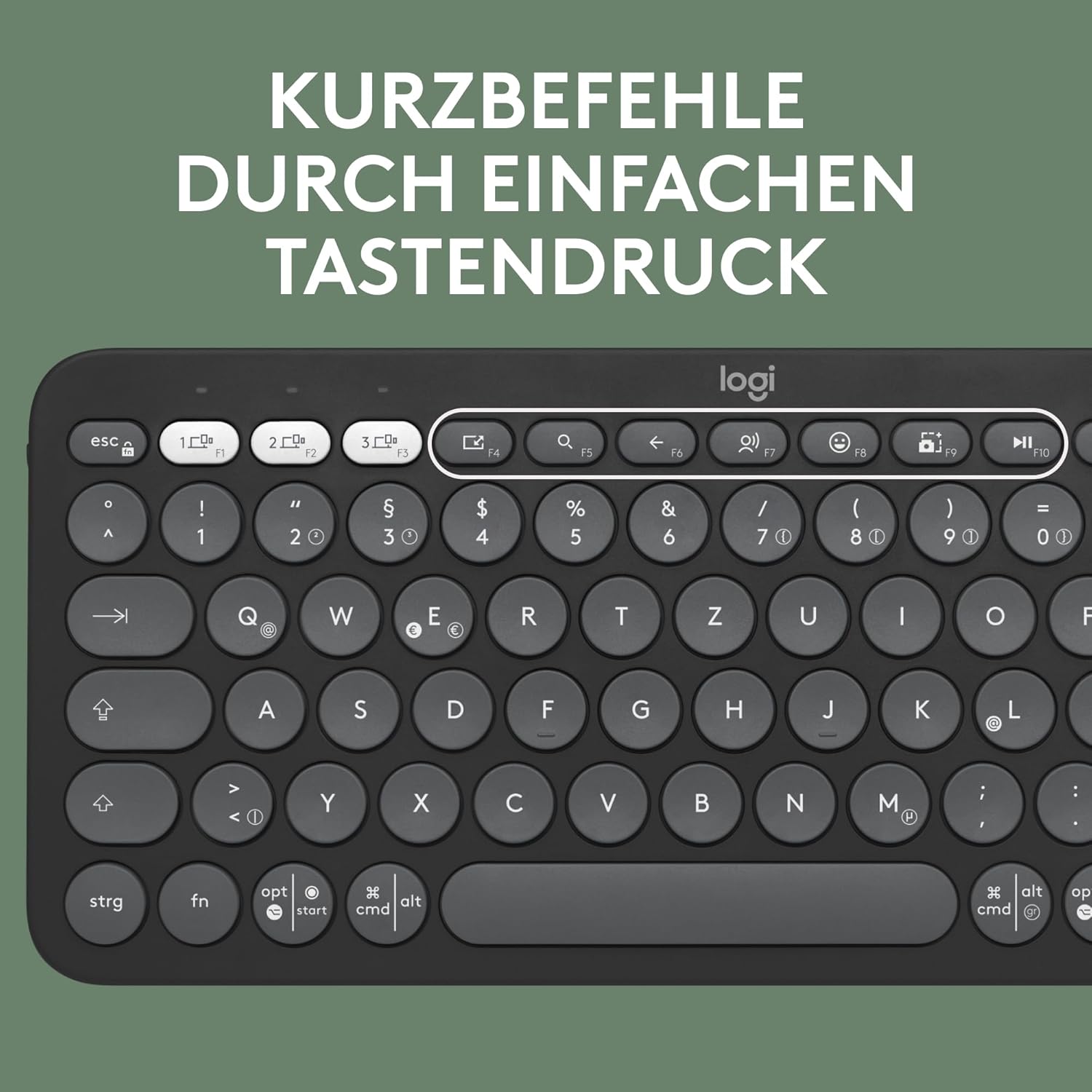 • Превключване между 3 устройства: Свържете се с до 3 безжични устройства във всички операционни системи чрез Bluetooth, като превключвате между тях с помощта на Easy-Switch. Включен е USB приемник Logi Bolt.
