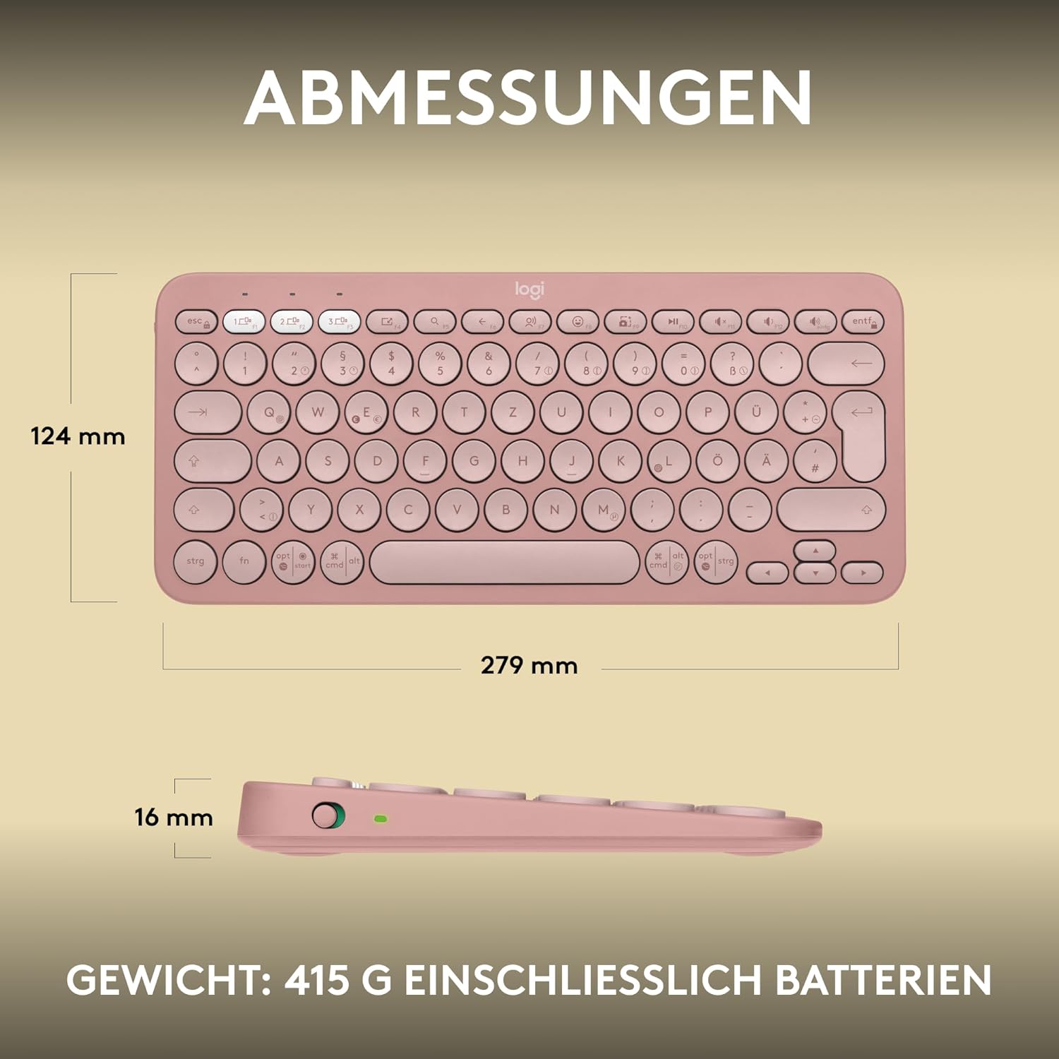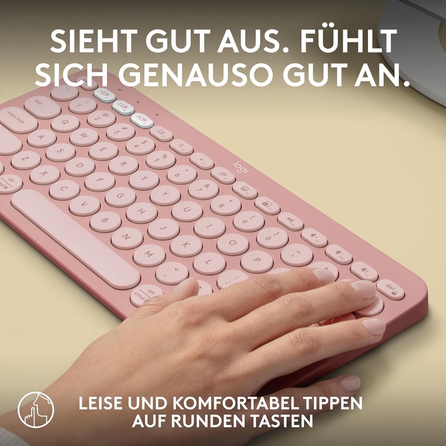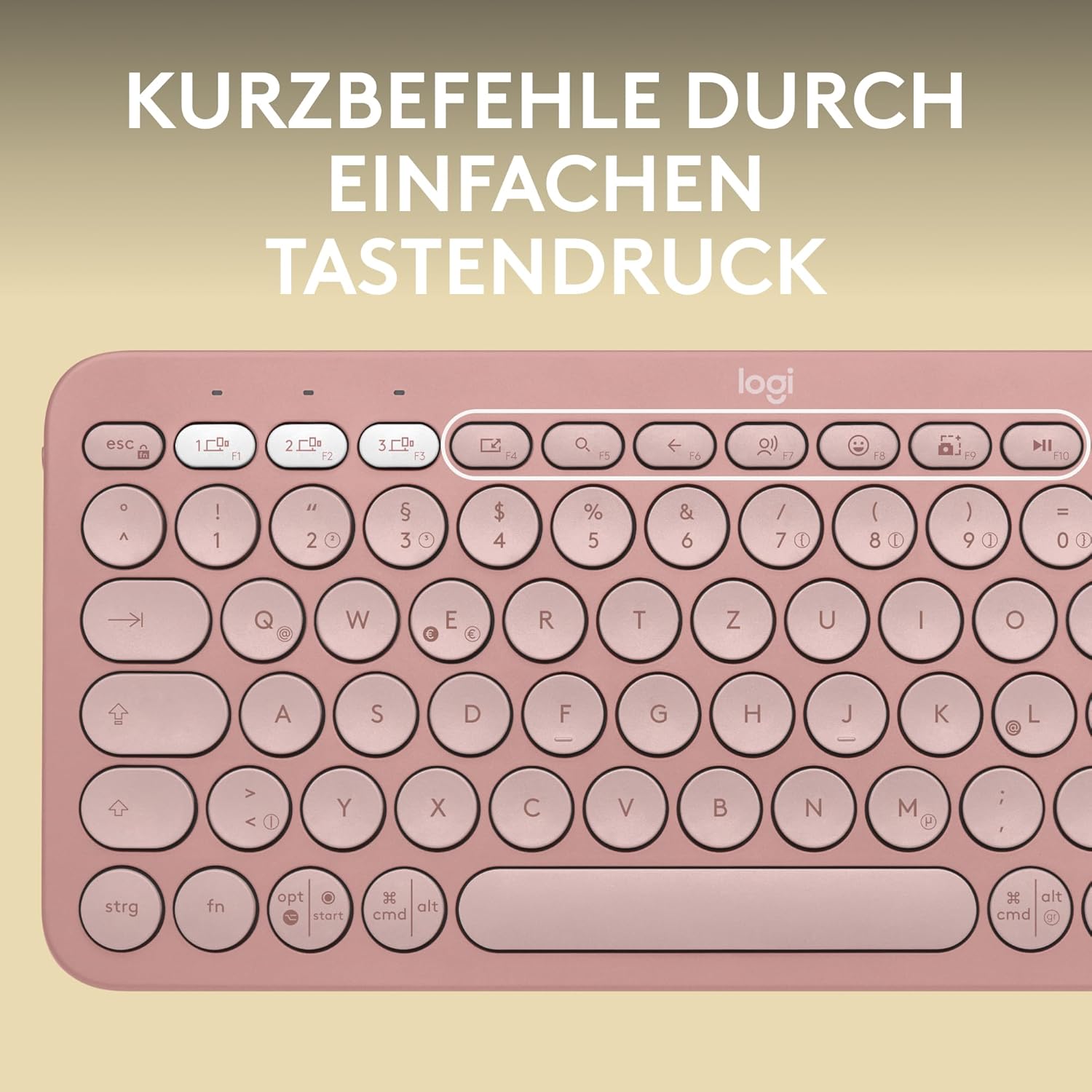 Logitech Pebble Keys 2 K380s, Безжична Bluetooth клавиатура за множество устройства с персонализируеми специални клавиши, Тънка - мобилна, Лесно превключване за Windows, MacOS, iPadOS, Android, ChromeOS, Немска QWERTZ клавиатура, Розова