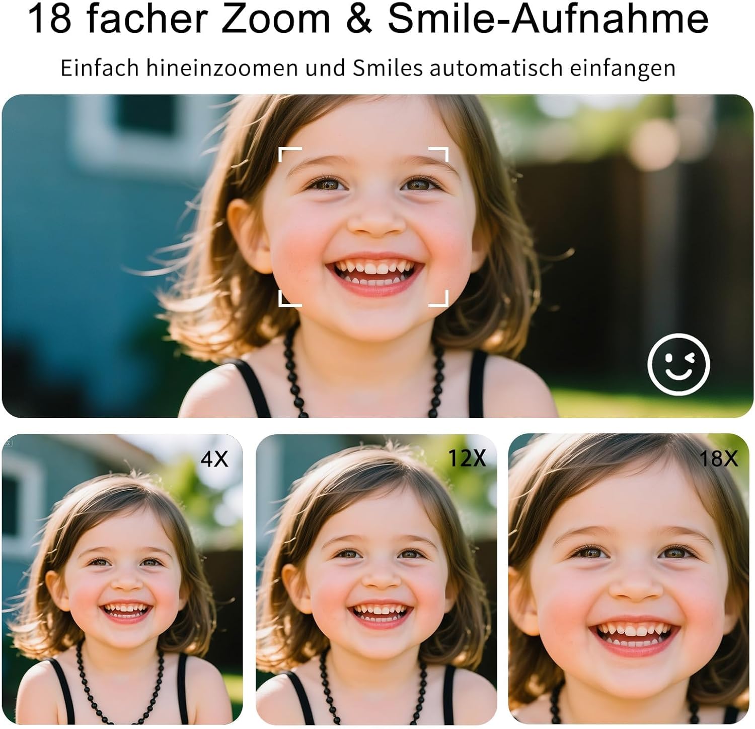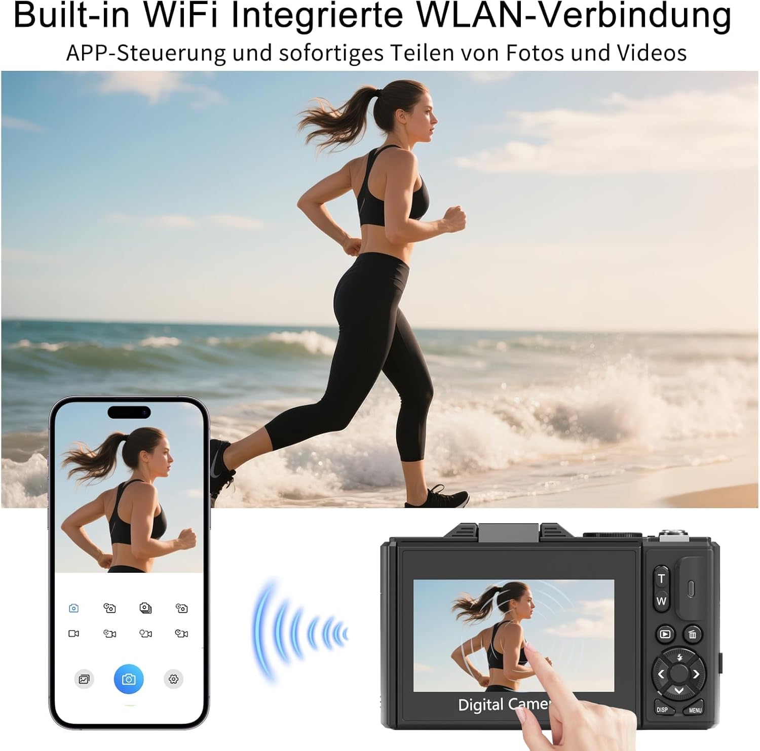 • UHD 5K и 75MP камери: Този цифров фотоапарат е специално проектиран за начинаещи. Той може лесно да записва изключително ясни 5K видеоклипове и разполага с камера с 75 милиона пиксела, за да ви представи изключително фина текстура на изображението. Той също така поддържа 18x увеличение, което ви позволява да правите уникални снимки. Уловете всеки момент.