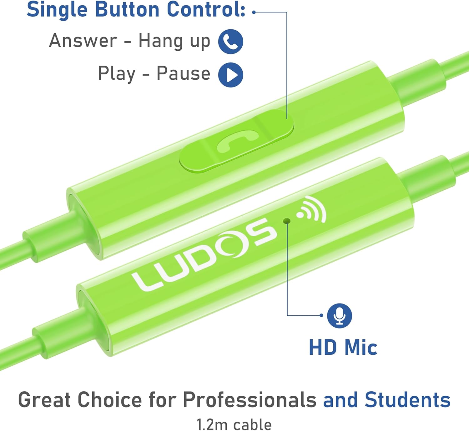 • Слушалки LUDOS: Ние сме водещата марка на пазара за кабелни слушалки в Amazon в Северна Америка и Европа. Предлагаме мощни високоговорители и отлично качество на звука. Кабелът е с дължина 1,2 м.