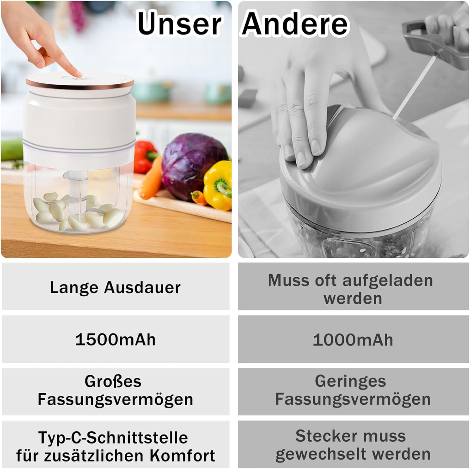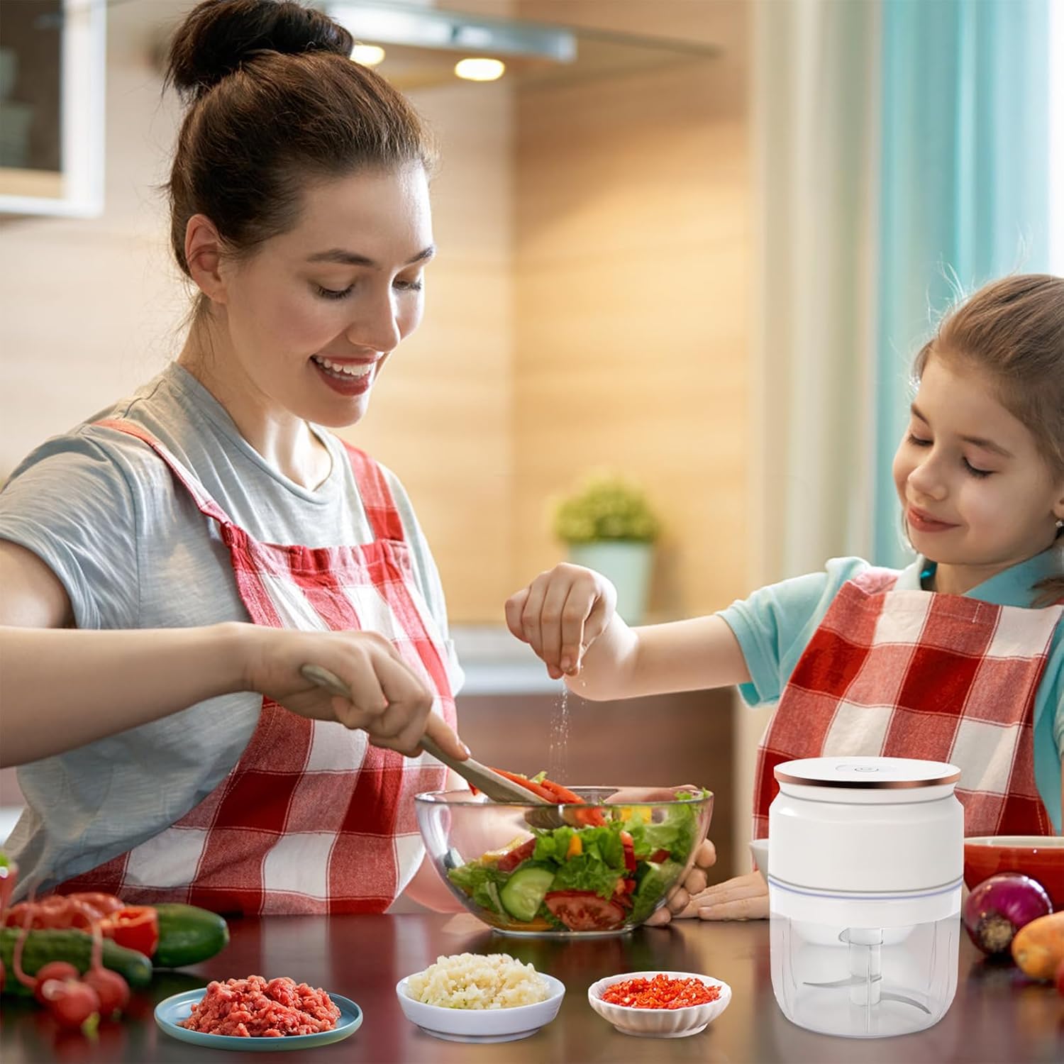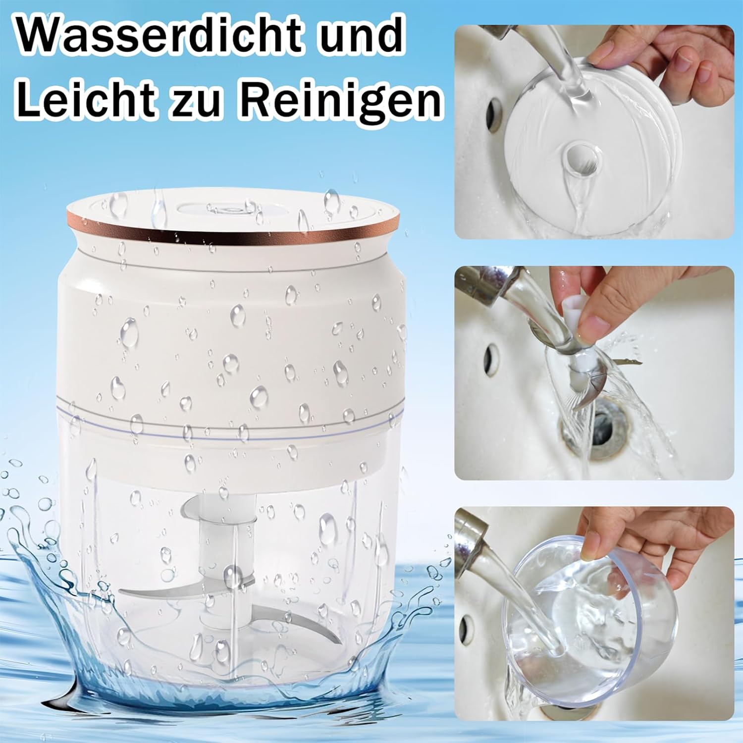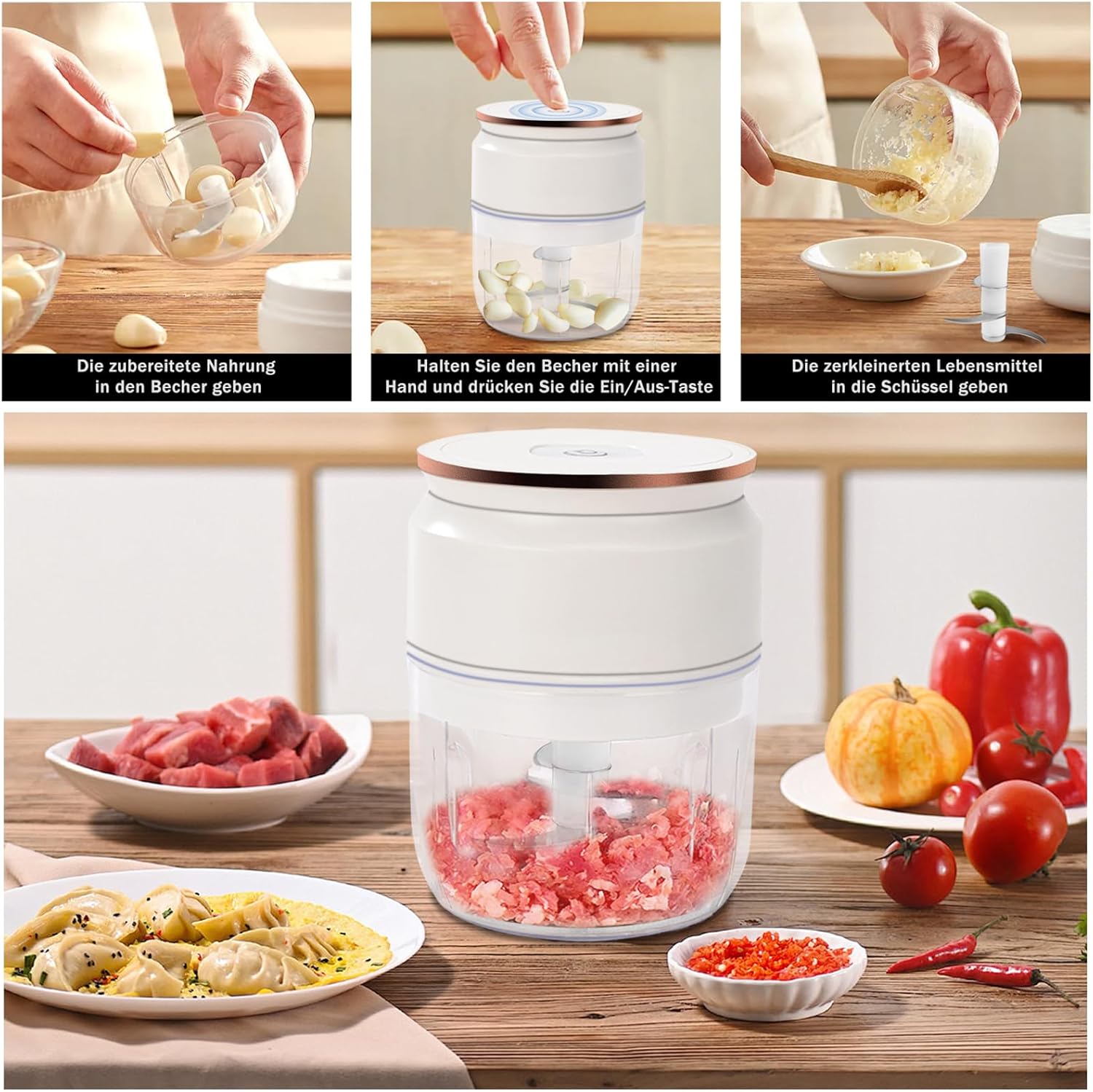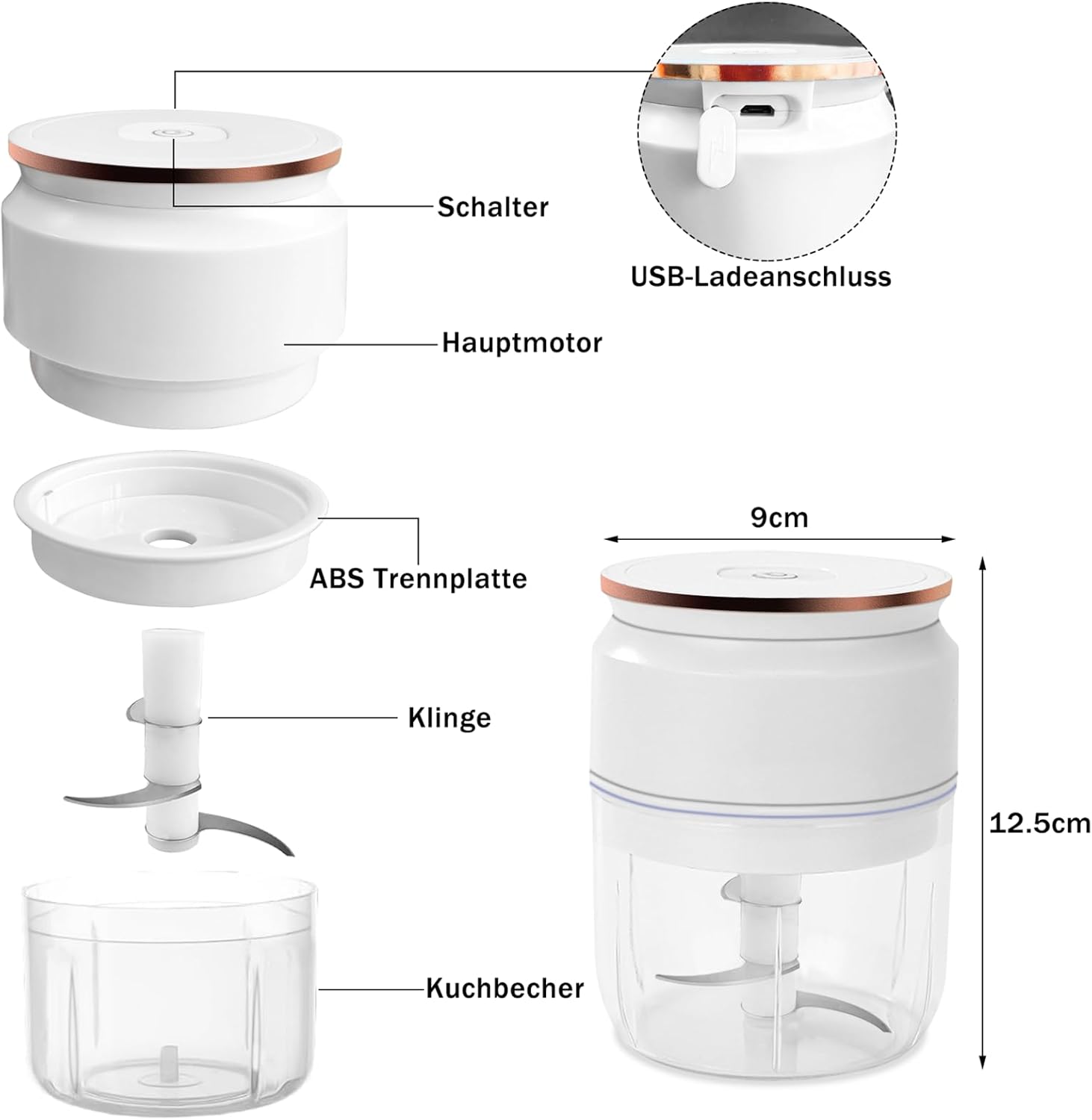 Лукорезачка, електрическа резачка, електрическа резачка за лук, резачка за зеленчуци, миксер, мултифункционална и универсална резачка, работен контейнер 300 мл с кабел за зареждане (бял)