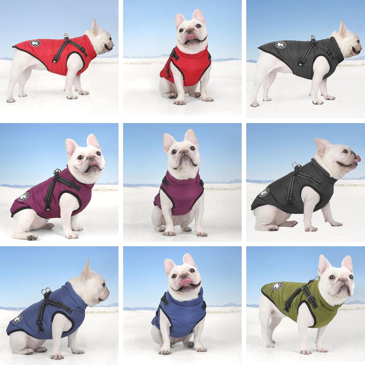 • Водоустойчив материал: Повърхността на зимното яке за кучета е изработена от водоустойчив материал, който може да поддържа кучето ви сухо и удобно при влажно време.