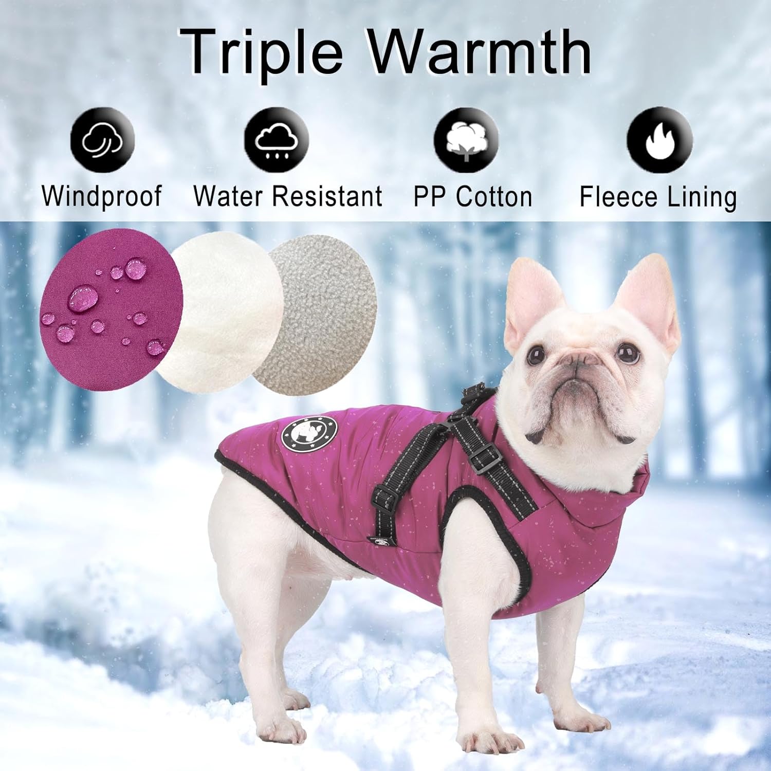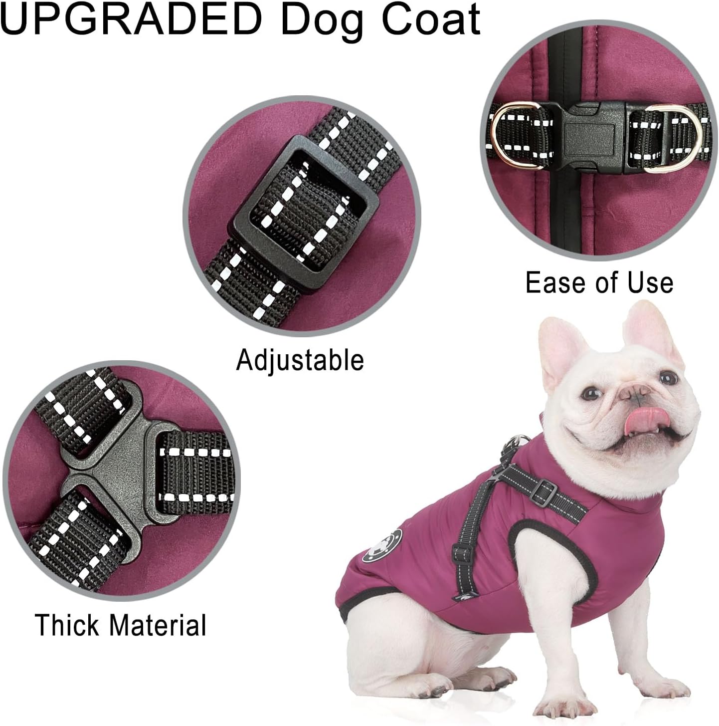 • Топло кучешко палто: Вътрешният слой, изработен от композитен полар, е лек и топъл, така че вашият домашен любимец да се чувства комфортно, топло и не тежко, а палтото не възпрепятства движението или изхождането му. Дизайнът на корема предотвратява загубата на топлина и е проектиран да поддържа стомаха топъл, което го прави подходящ за студена зима.