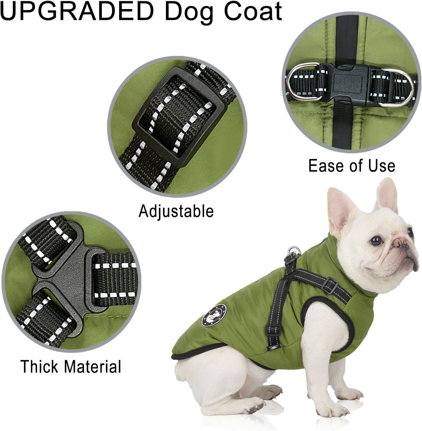 LUOWAN Водоустойчиво палто за кучета, Палто за френски булдог, Топъл жилет с колан за кучета, Различни размери, Яке за малки кучета (XXL, Лилаво)