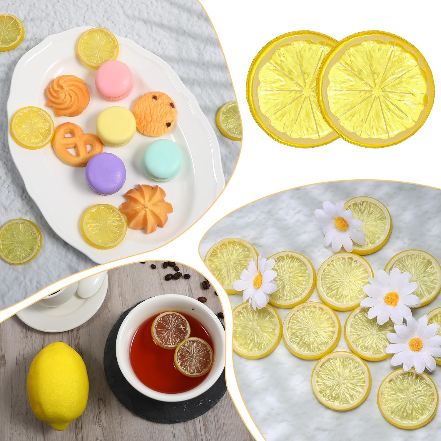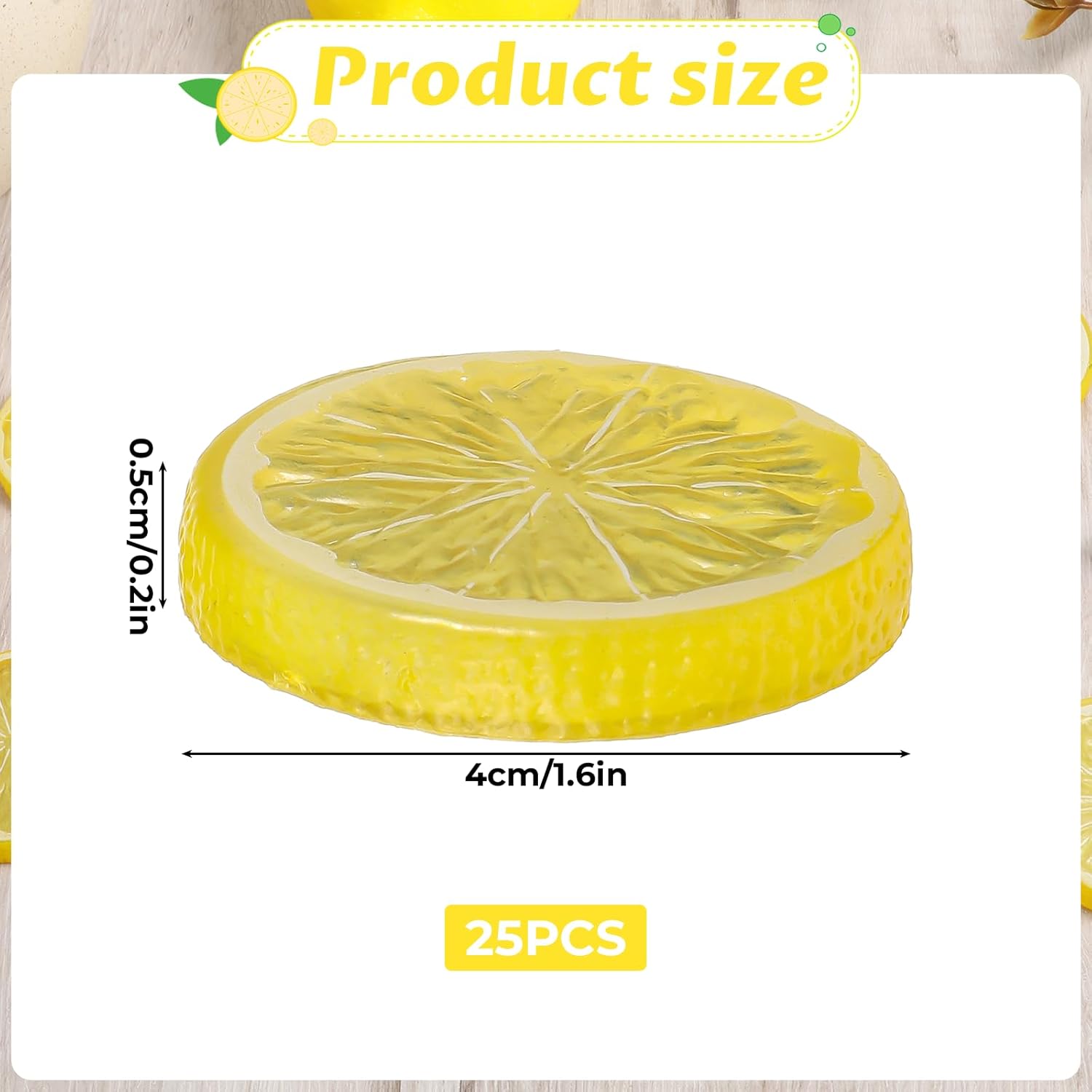 • ЛЕСНА ПОДДРЪЖКА Изкуствените парчета лимон са лесни за почистване и поддръжка. Те са имитация на резен лимон за многократна употреба и не гният, не се деформират и не се обезцветяват с времето.