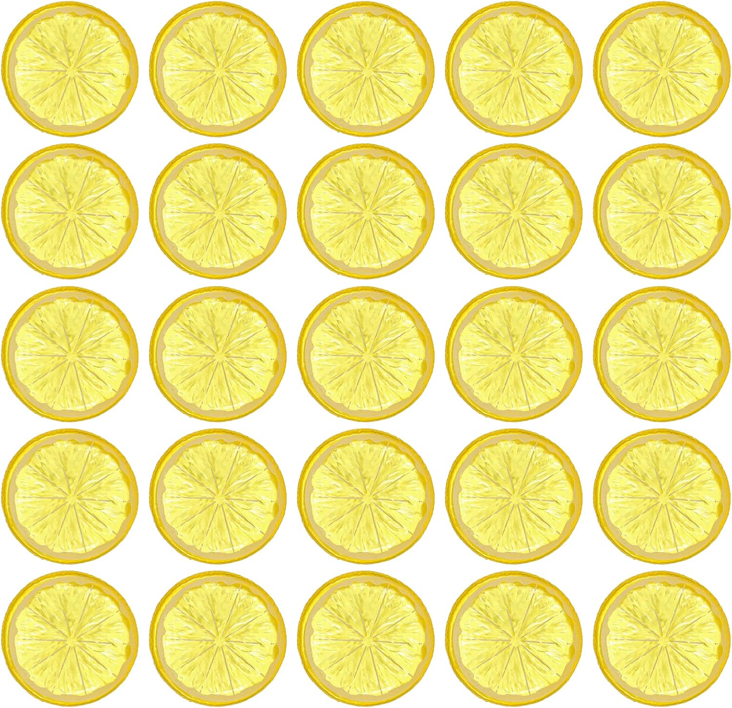 Lusofie пакет от 25 мини изкуствени резена лимон, симулация, пластмасови лимонови декоративни пластмасови резени лимон, декоративни за фестивална парти декорация, пълнене на кошница у дома