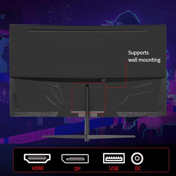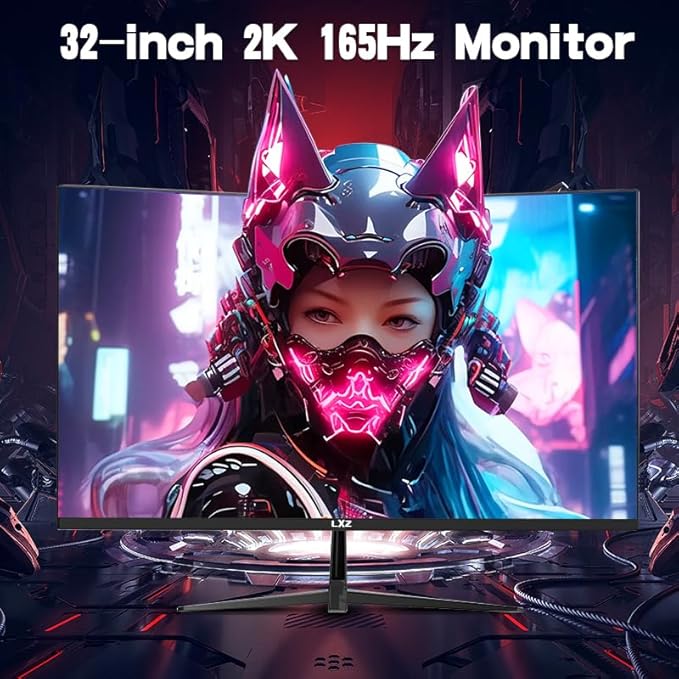 LXZ 32-инчов компютърен монитор 1800R, 2K QHD (2560 x 1440) 165Hz безрамков дисплей с FreeSync, DisplayPort DP, HDMI - черен