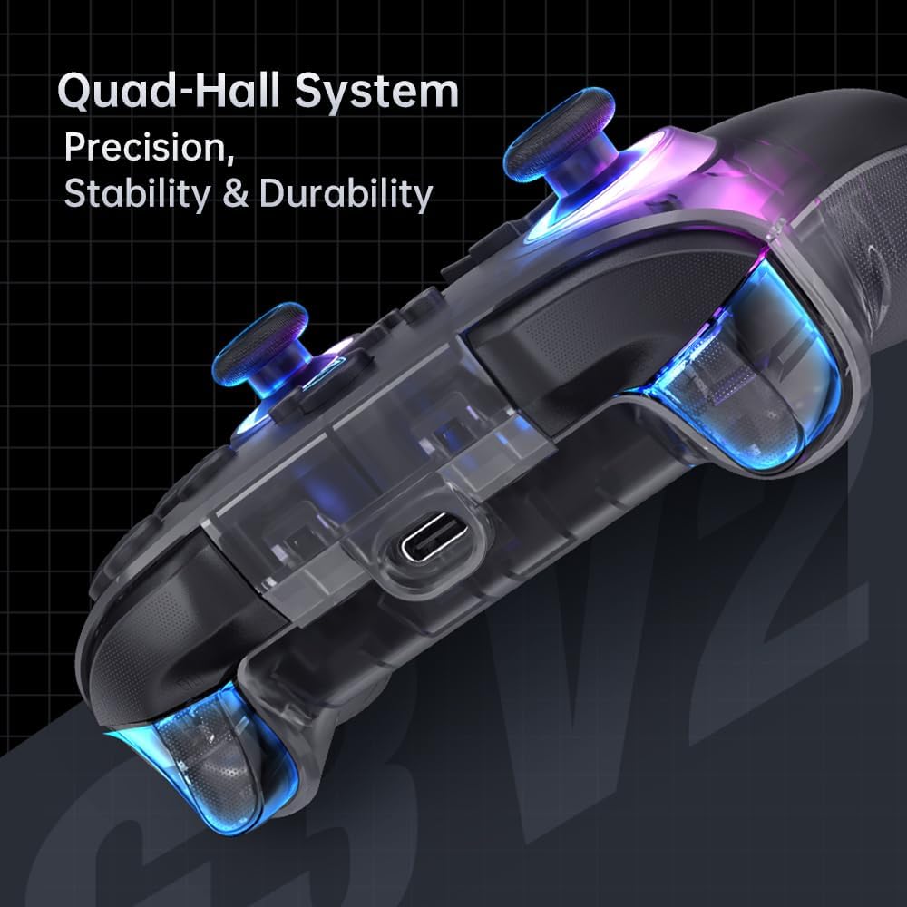 Machenike G3V2 Bluetooth контролер за PC/Switch/iOS/Android, джойстици с ефект на Хол, RGB осветление, програмируеми бутони, батерия 1000mAh, ултра ниска латентност и честота на семплиране 1000Hz (черен, ST)