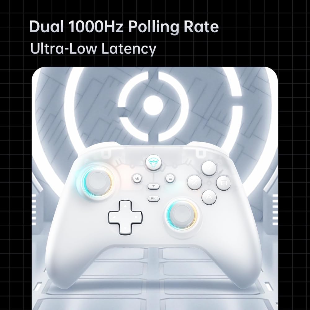 • Светкавично бърза реакция от 1000Hz: Изживейте светкавично бърза игра с нашия контролер, който предлага реална честота на семплиране от 1000Hz в кабелен и безжичен режим. Проектиран за състезателни играчи, той гарантира ултраниска латентност. Получете решаващо предимство в FPS и състезателни игри, тъй като всеки вход се регистрира прецизно и бързо – перфектният избор за сериозни геймъри, които искат да подобрят производителността си.
