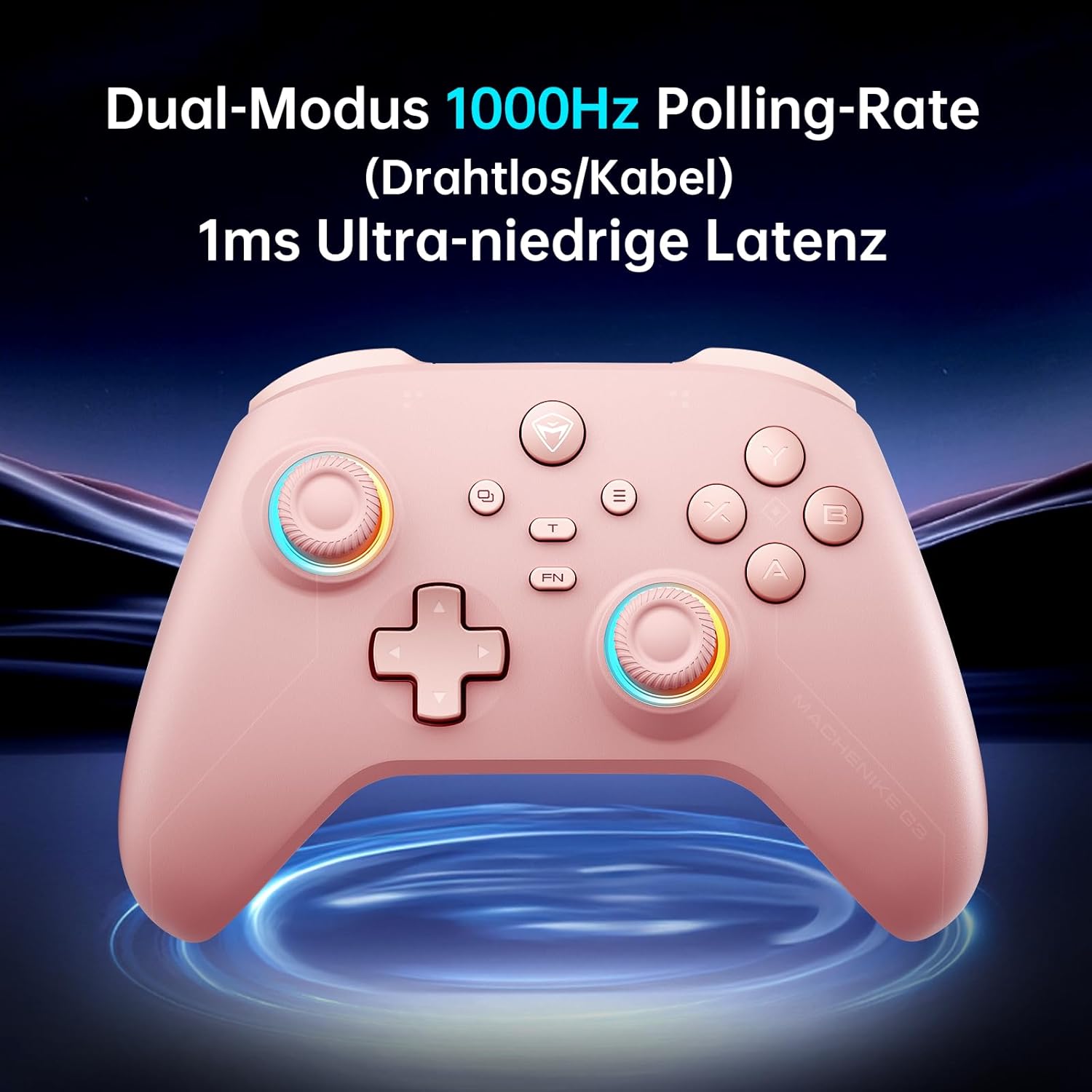 Machenike G3V2 PC контролер, безжичен PC геймпад, 2 регулируеми джойстика с ефект на Хол, 2 програмируеми бутона, с цветни RGB светлини, за Switch/iOS/Android, батерия 1000mAh (розов PE UG)