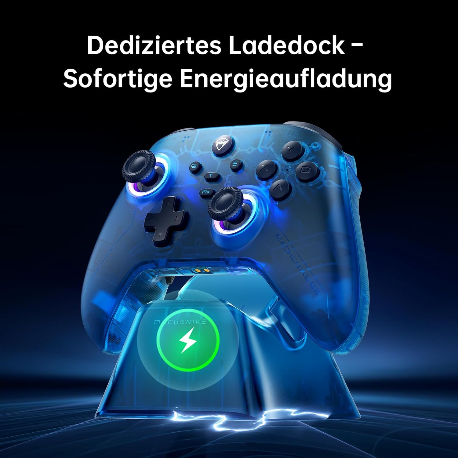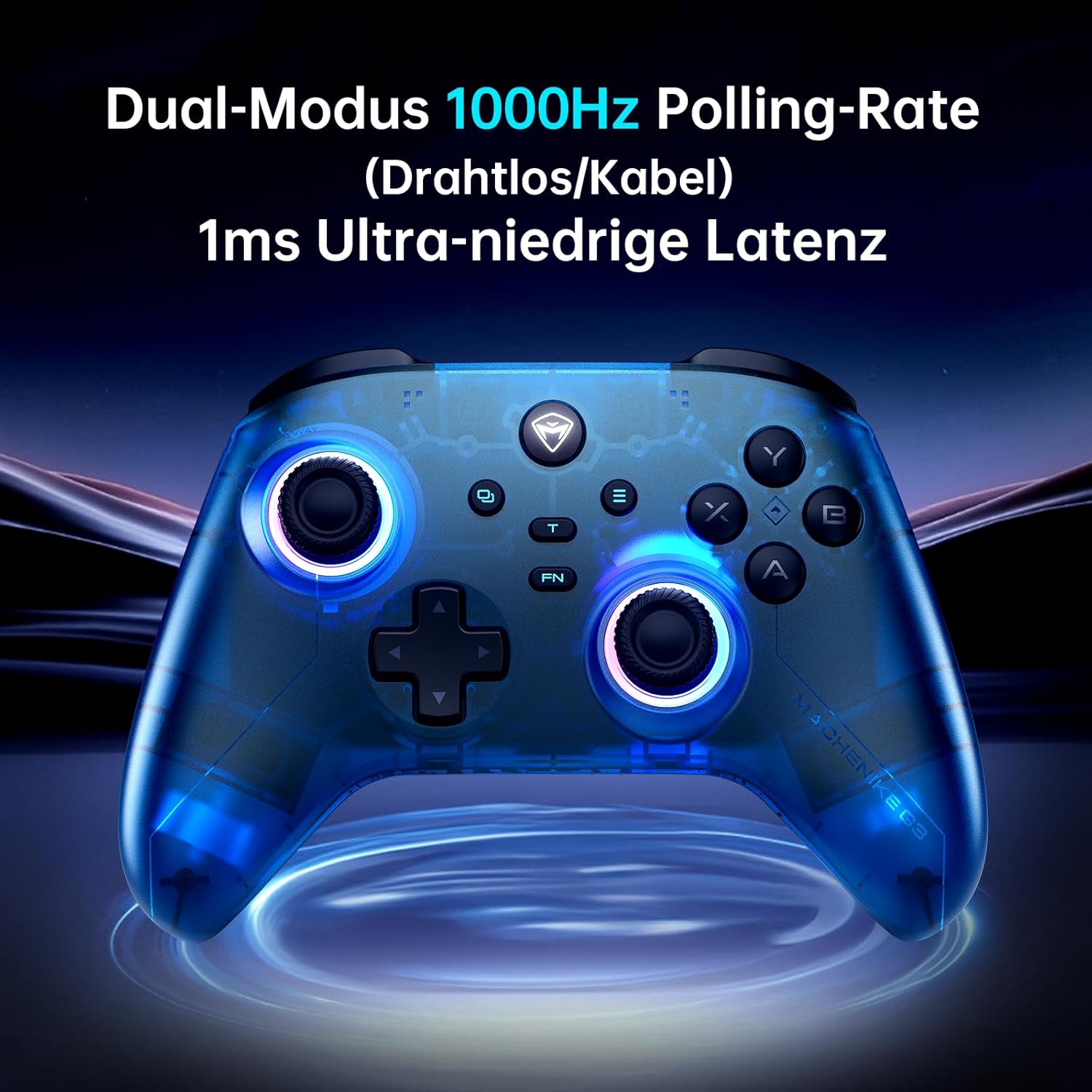 Machenike G3V2 PC контролер, безжичен PC геймпад, 2 регулируеми джойстика с ефект на Хол, 2 програмируеми бутона, с цветни RGB светлини, за Switch/iOS/Android, батерия 1000mAh (син PE UG)