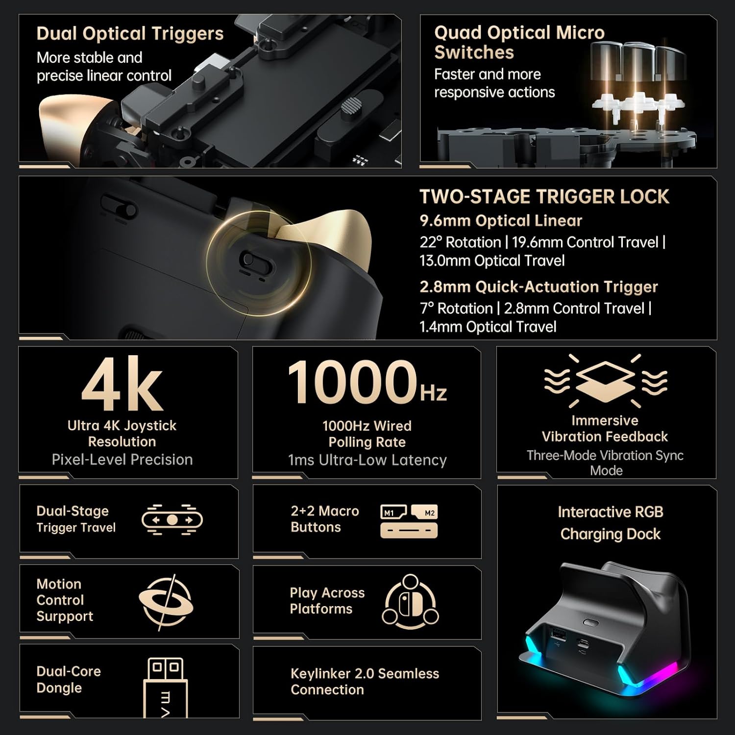 • Иновативен оптичен спусък: двойна стабилност, ненадмината прецизност. Несравнима чувствителност и стабилност, без магнитни смущения за плавен и прецизен контрол. Те предлагат безпроблемен геймплей, бързо време за реакция и по-дълъг живот на контролера на компютъра. Независимо дали харесвате състезателни игри или шутъри от първо лице, нашите контролери за компютърни игри предлагат несравнима точност и скорост.