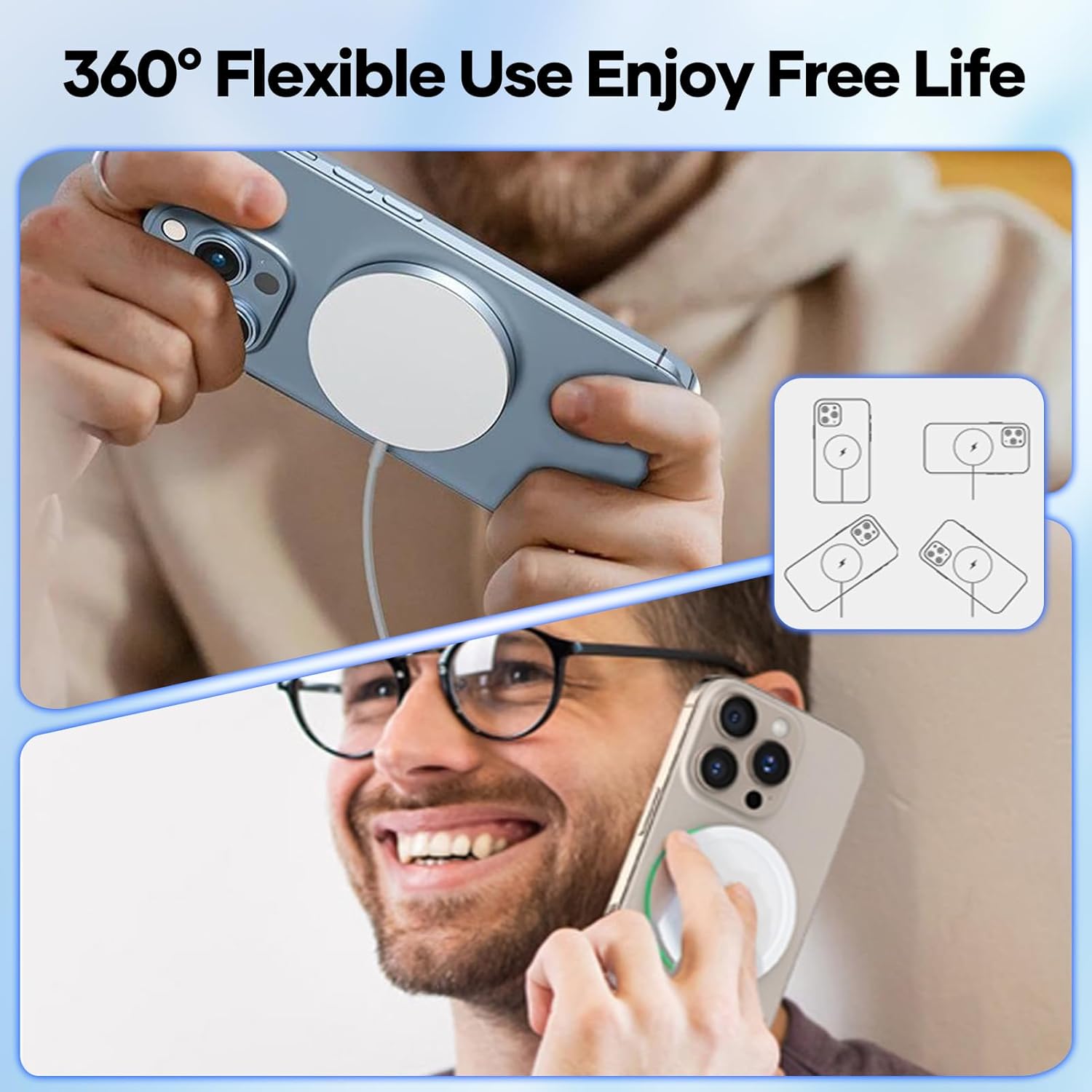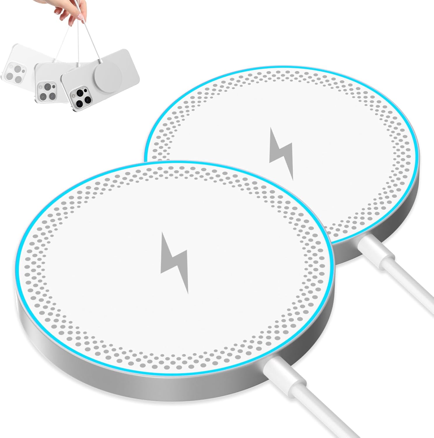 • Специално разработено за мобилни телефони от 17 16 15 14 13 12: Това Mag-Safe зарядно устройство е съвместимо с iPhone 17 / 17 Air / 17 Pro / 17 Pro / 17 Pro Max, iPhone 16 / 16 Plus / 16 Pro / 16 Pro Max, iPhone 15 / 15 Plus / 15 Pro / 15 Pro. iPhone Max, iPhone 14 / 14 Plus / 14 Pro / 14 Pro Max, iPhone 13 / 13 Pro / 13 Pro Max / 13 Mini, iPhone 12 / 12 Pro / 12 Pro Max / 12 Mini и Air Pods 3 2 Pro, както и моделите iPhone 8 и по-нови модели с магнитни калъфи, също могат да се зареждат магнитно. ️Забележка: Моля, използвайте Mag-Safe калъфа за по-силно намагнитване, обикновените калъфи ще отслабят магнитната адсорбция.