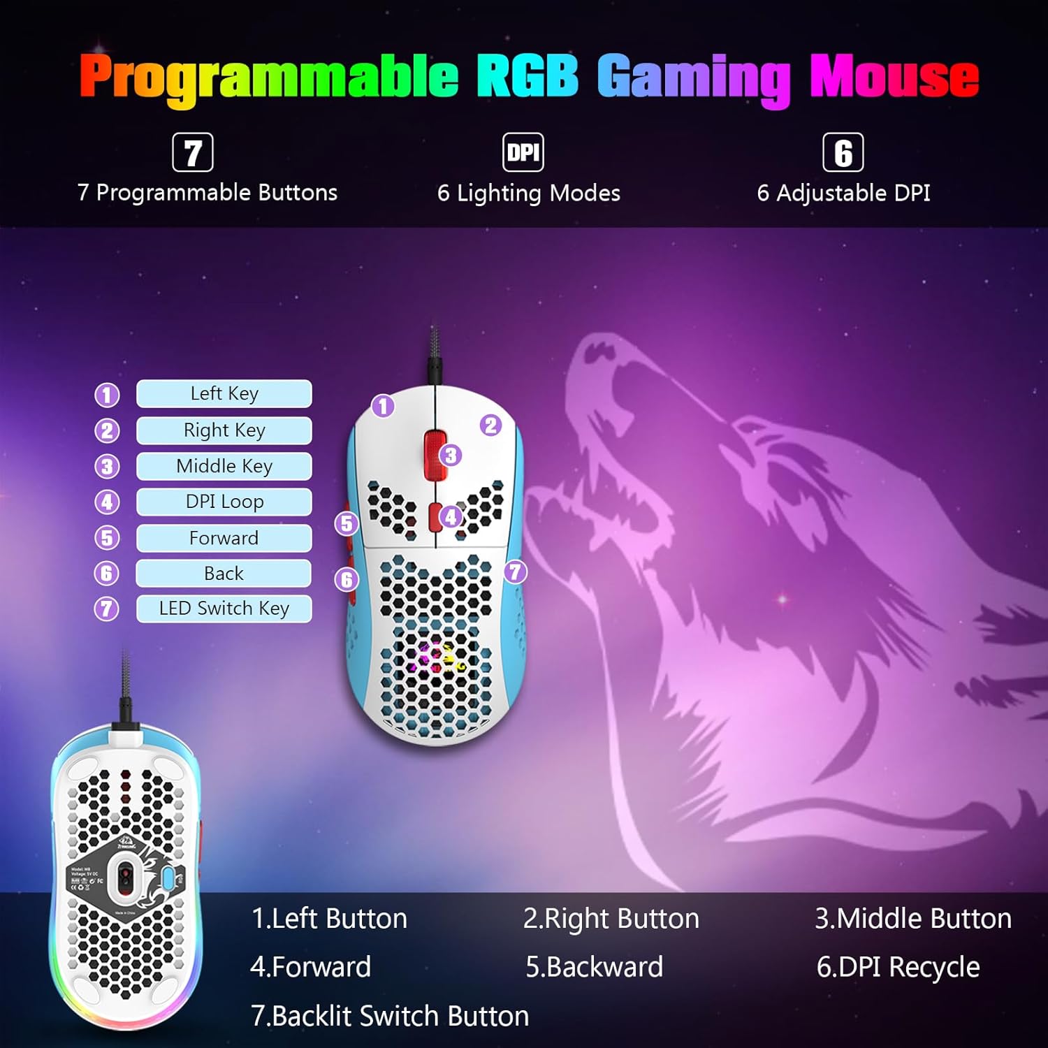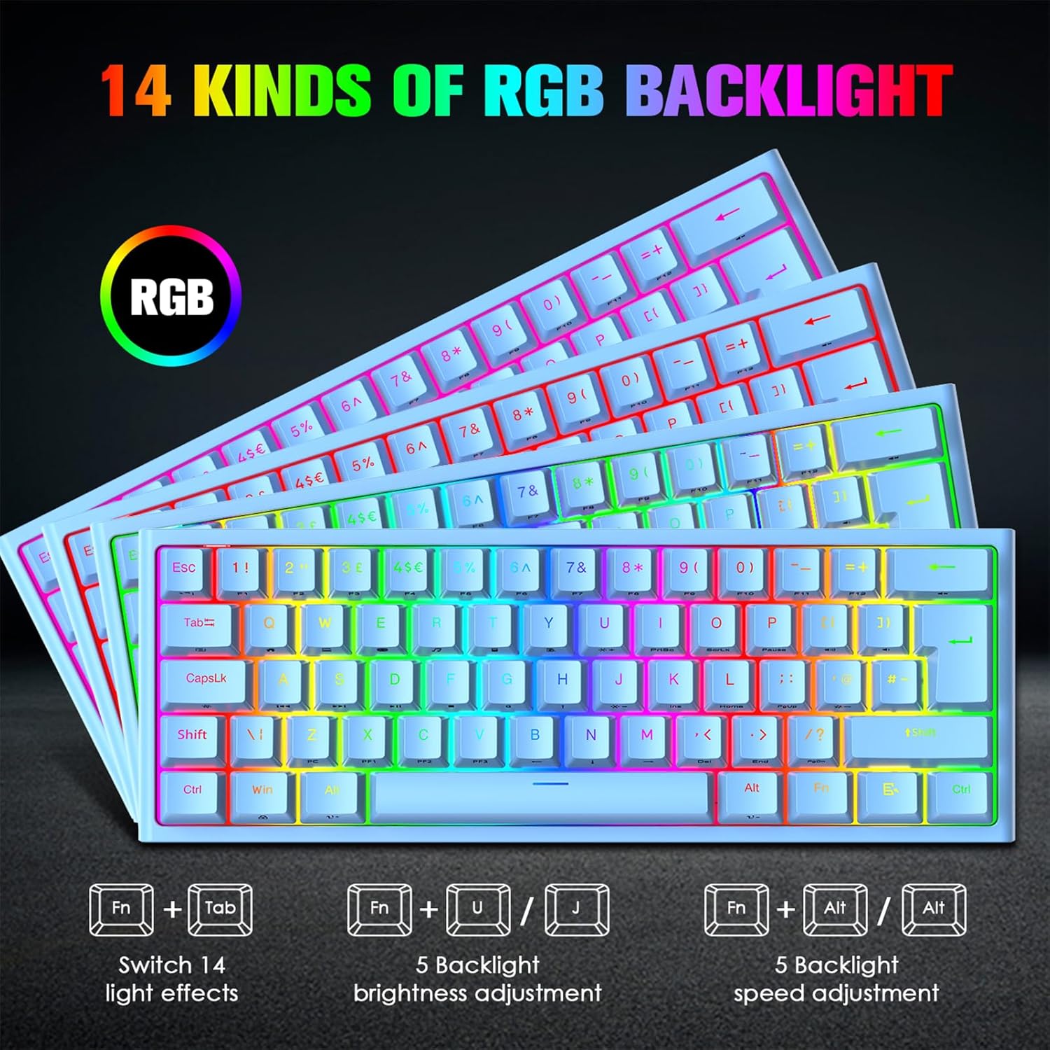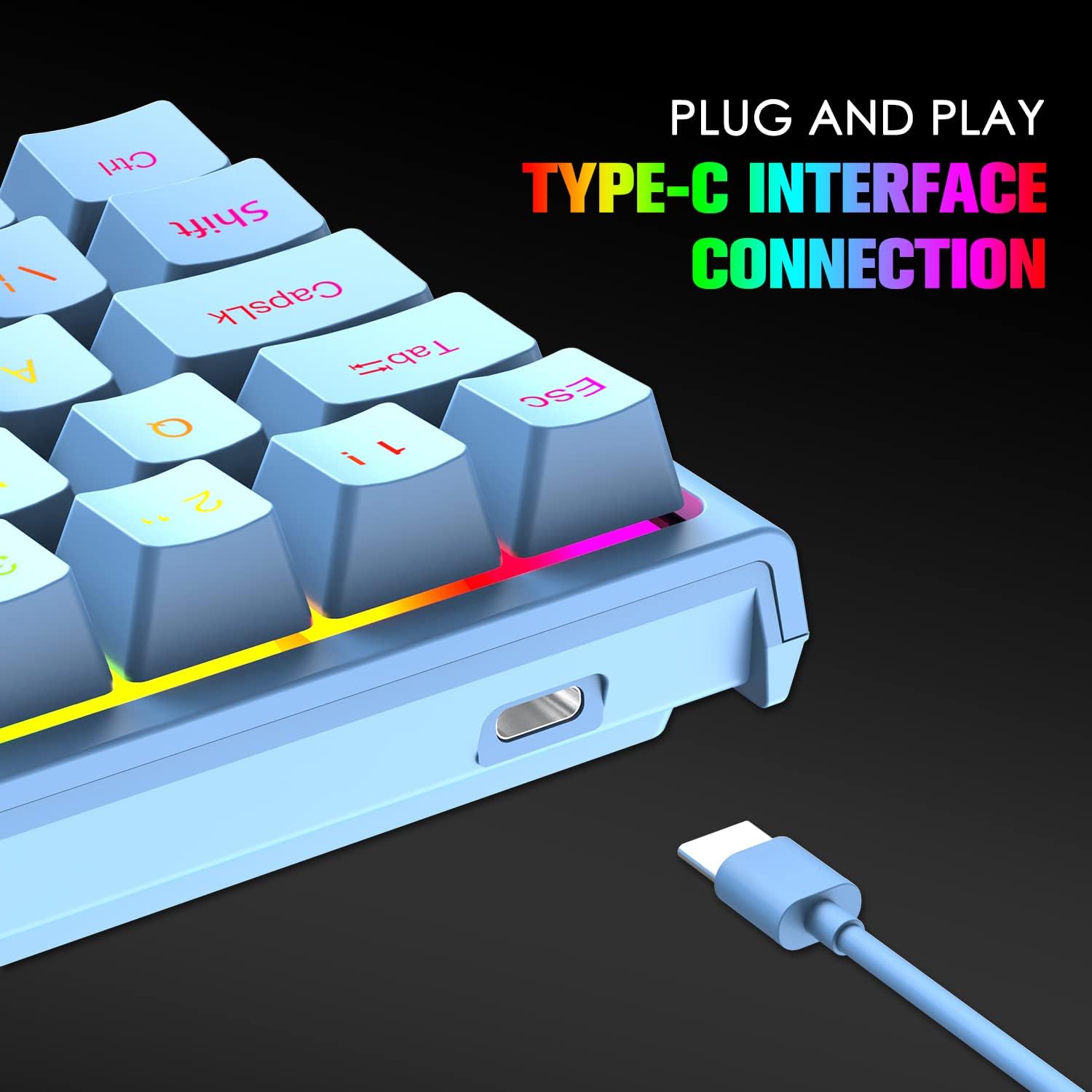 MAGIC-REFINER 60% Геймърска комбинация от клавиатура и мишка, RGB подсветка, Механична клавиатура, Лека геймърска мишка, 62 клавиша, USB-C кабел, 6400 DPI, Win/Mac, QWERTY