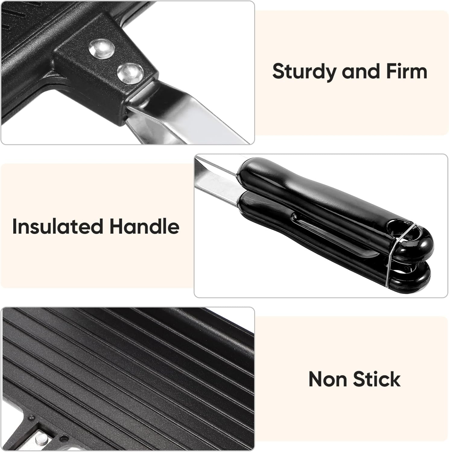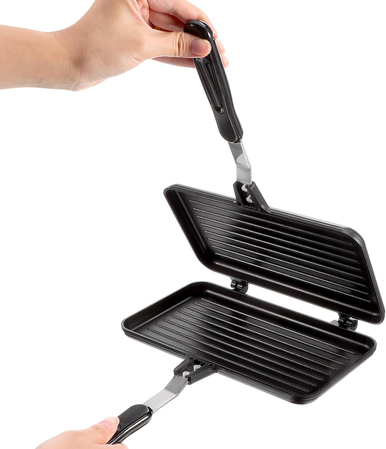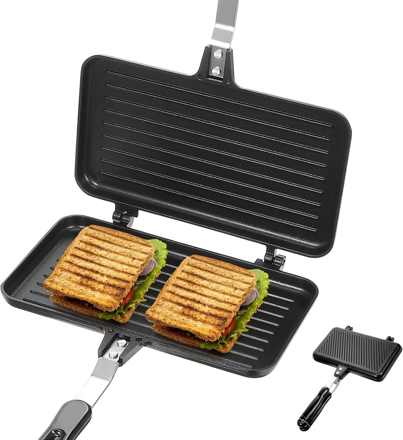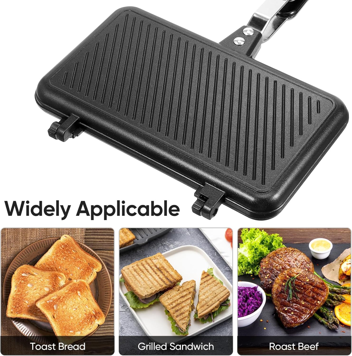 MAGICLULU Двустранна форма за печене на сандвичи, незалепващ тиган за грил с дръжка, тостер, XL сандвич машина, котлон, тостер, сандвич машина, изработена от алуминий за кухня и дома