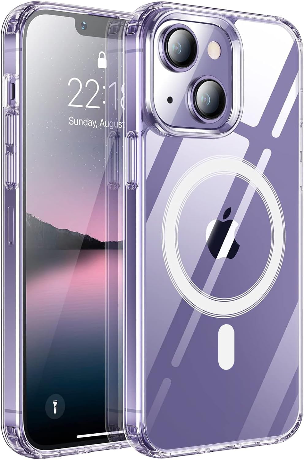 Магнитен калъф Oprimio за iPhone 15 Plus - прозрачен калъф за мобилен телефон, силен магнит, устойчив на надраскване PC гръб - съвместим с аксесоари MagSafe