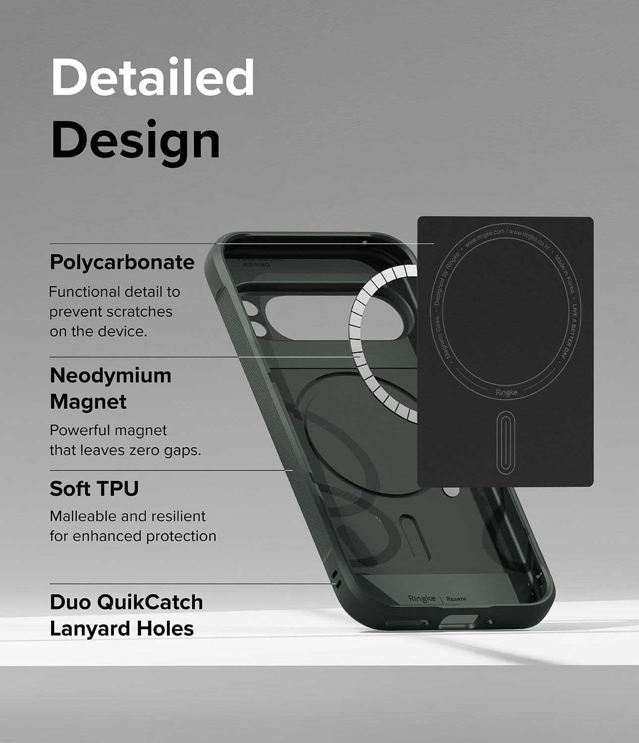 Магнитен калъф Ringke Onyx за Google Pixel 9 Pro, съвместим с MagSafe, неплъзгащ се, против пръстови отпечатъци, удароустойчив, устойчив на надраскване калъф за мобилен телефон с прецизни изрези за камерата, тъмнозелен