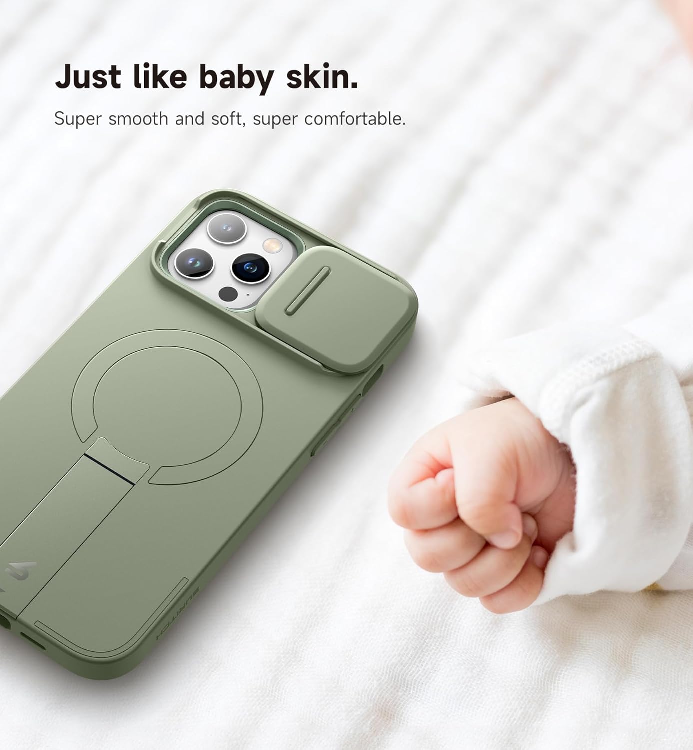Магнитен калъф SURITCH, съвместим с 12 Pro Max/13 Pro Max, удароустойчив калъф за мобилен телефон с плъзгащ се капак на камерата и регулируема стойка (каки зелен)