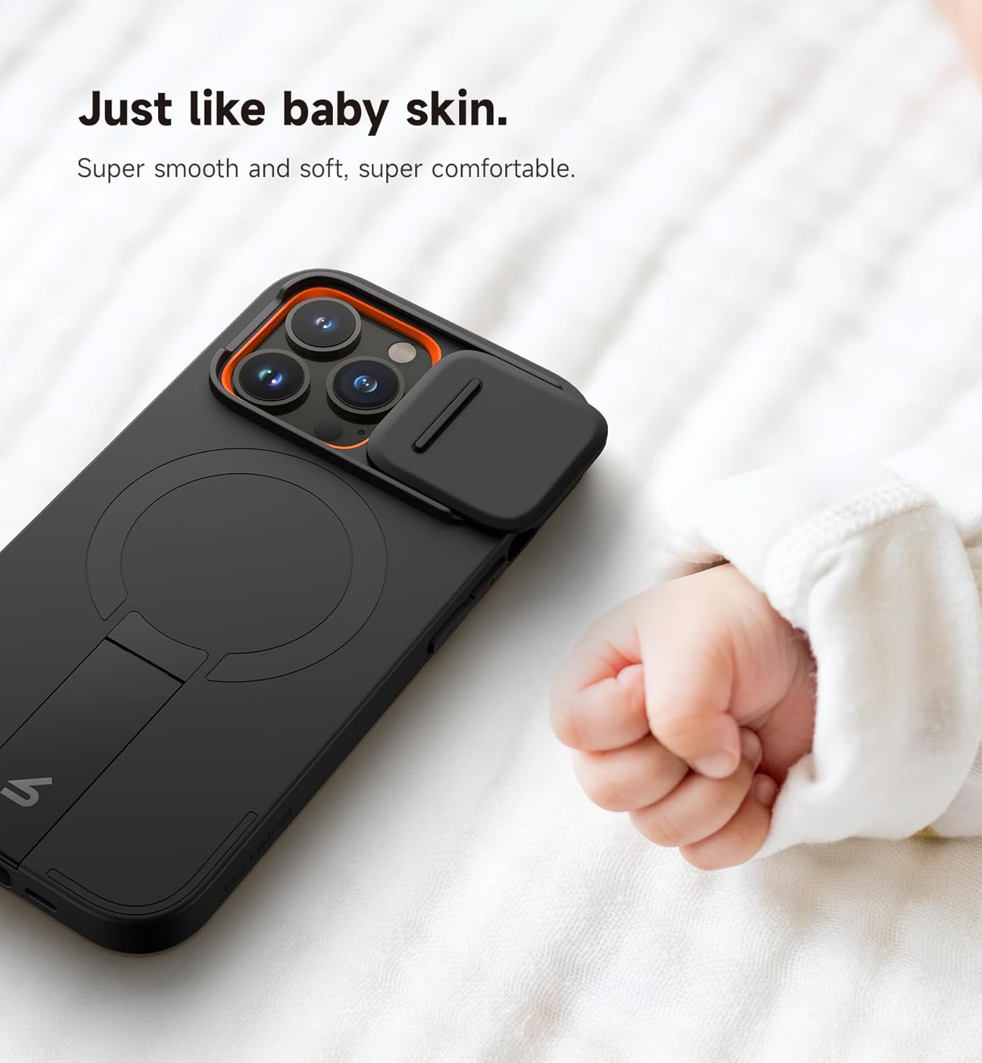 • Мощно магнитно закрепване: Този тънък калъф е с изключително силно магнитно закрепване (до 13,28 N), за да гарантира, че телефонът ви е здраво свързан с всички магнитни аксесоари, включително безжични зарядни устройства, държачи за превозни средства, захранване и др.