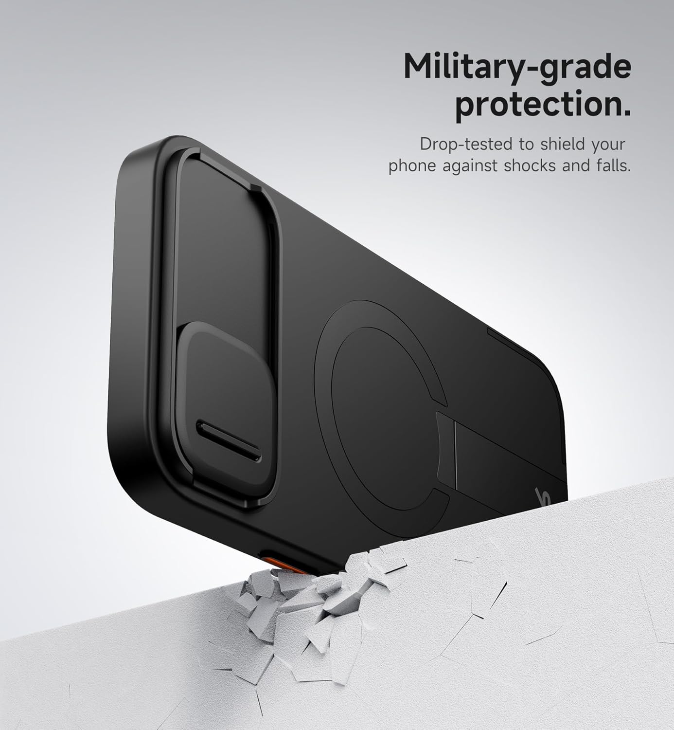 • Мощно магнитно закрепване: Този тънък калъф е с изключително силно магнитно закрепване (до 13,28 N), за да гарантира, че телефонът ви е здраво свързан с всички магнитни аксесоари, включително безжични зарядни устройства, държачи за превозни средства, захранване и др.
