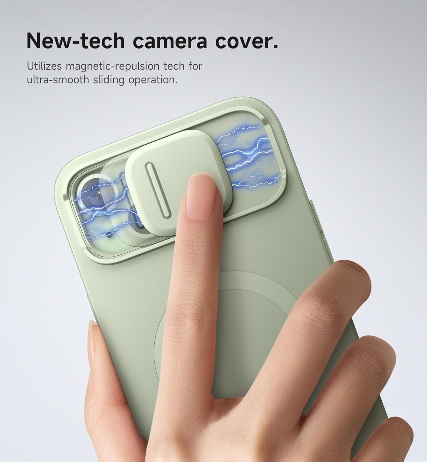 • Мощно магнитно закрепване: Този тънък калъф е с изключително силно магнитно закрепване (до 13,28 N), за да гарантира, че телефонът ви е здраво свързан с всички магнитни аксесоари, включително безжични зарядни устройства, държачи за превозни средства, захранване и др.