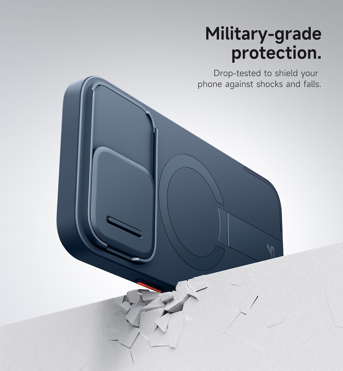 • Мощно магнитно закрепване: Този тънък калъф е с изключително силно магнитно закрепване (до 13,28 N), за да гарантира, че телефонът ви е здраво свързан с всички магнитни аксесоари, включително безжични зарядни устройства, държачи за превозни средства, захранване и др.