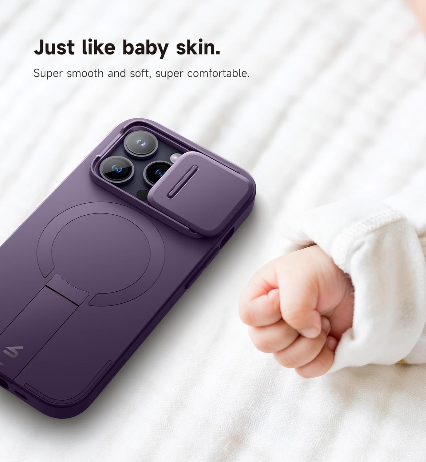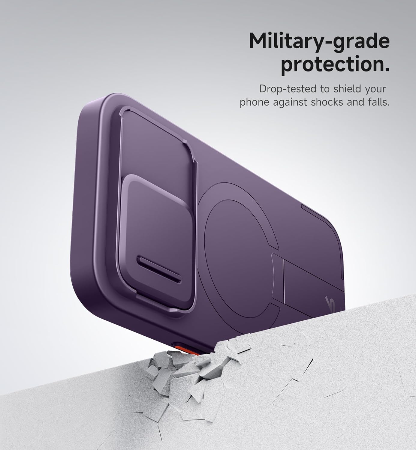 Магнитен калъф SURITCH, съвместим с iPhone 14 Pro, удароустойчив калъф за мобилен телефон, защитен калъф, устойчив на надраскване, с плъзгащ се капак за камерата и регулируема стойка (лилав)
