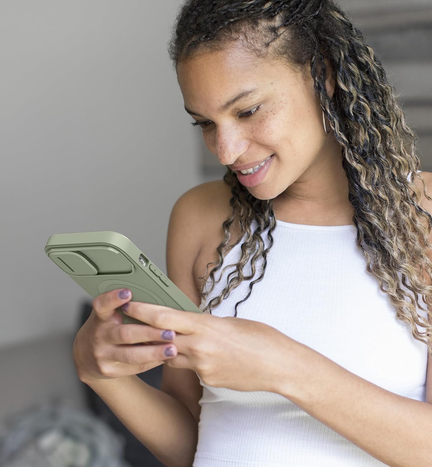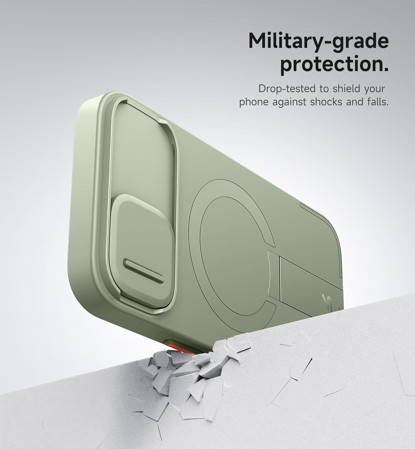 Магнитен калъф SURITCH, съвместим с iPhone 15, удароустойчив калъф за мобилен телефон, защитен калъф, устойчив на надраскване, с плъзгащ се капак за камерата и регулируема стойка (каки зелен)