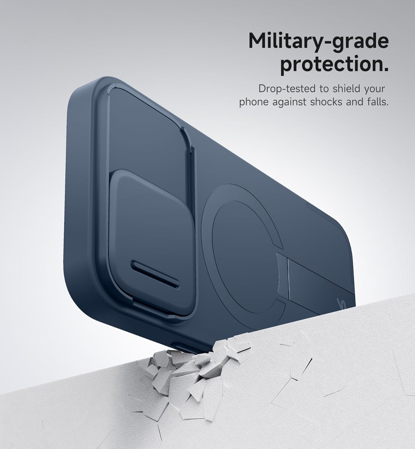 Магнитен калъф SURITCH, съвместим с iPhone 16 Pro Max, удароустойчив калъф за мобилен телефон, защитен калъф, устойчив на надраскване, с плъзгащ се капак за камерата и регулируема стойка (тъмносин)