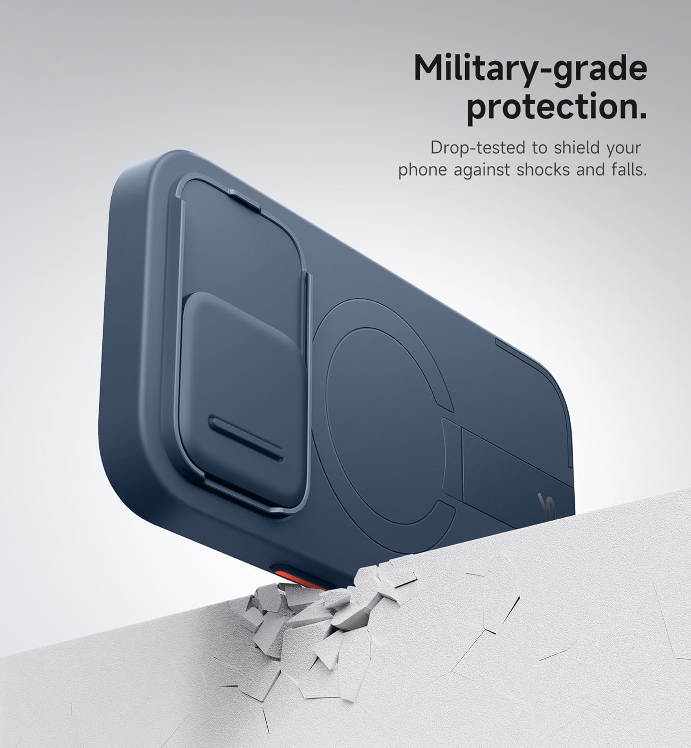 • Мощно магнитно закрепване: Този тънък калъф е с изключително силно магнитно закрепване (до 13,28 N), за да гарантира, че телефонът ви е здраво свързан с всички магнитни аксесоари, включително безжични зарядни устройства, държачи за превозни средства, захранване и др.