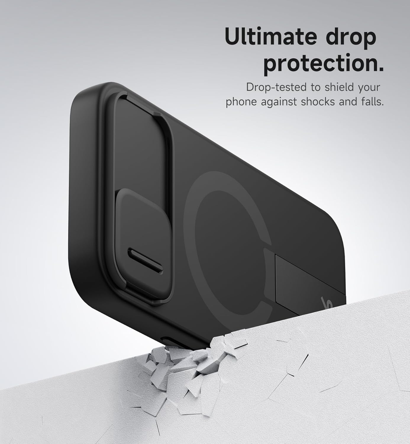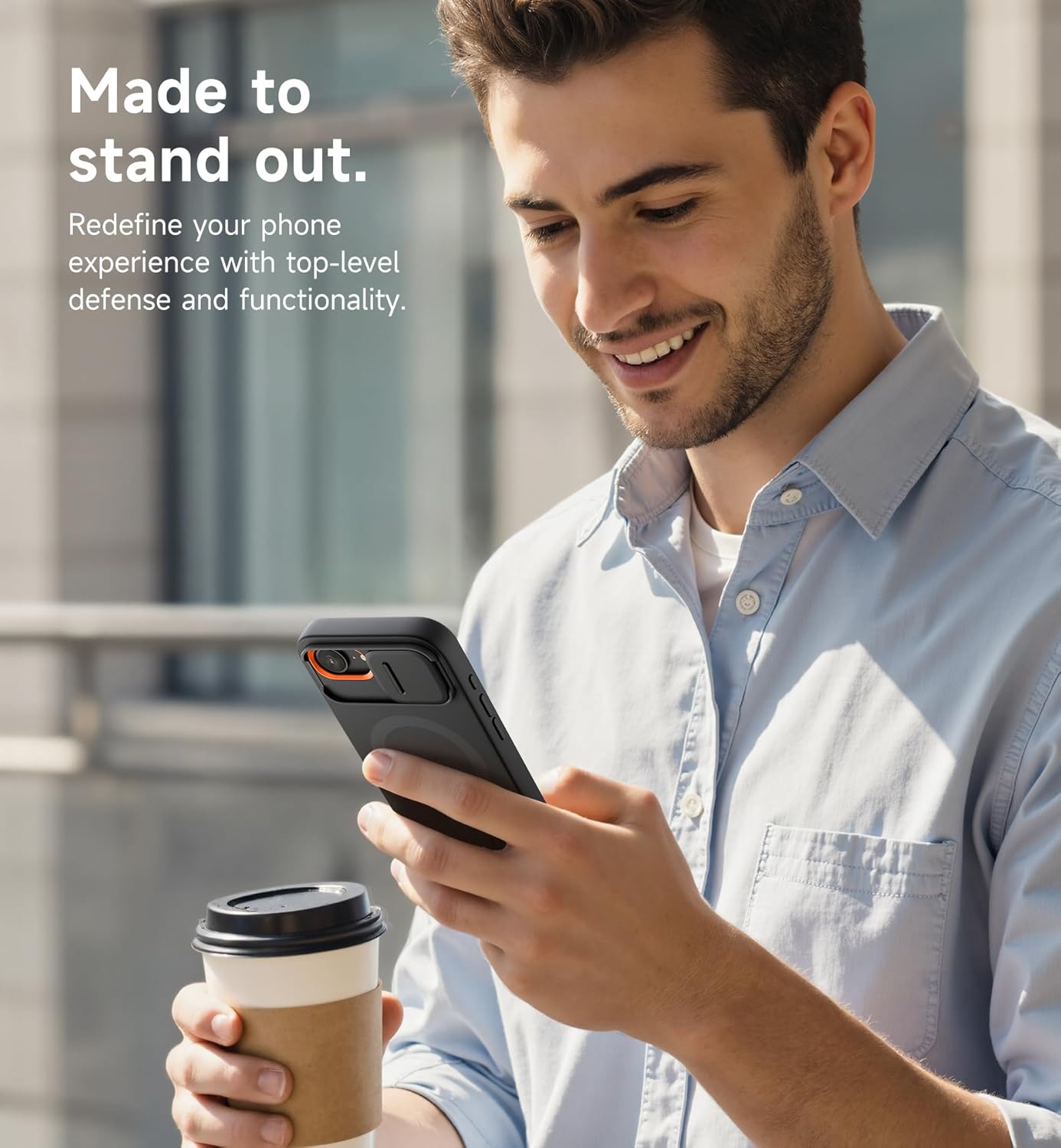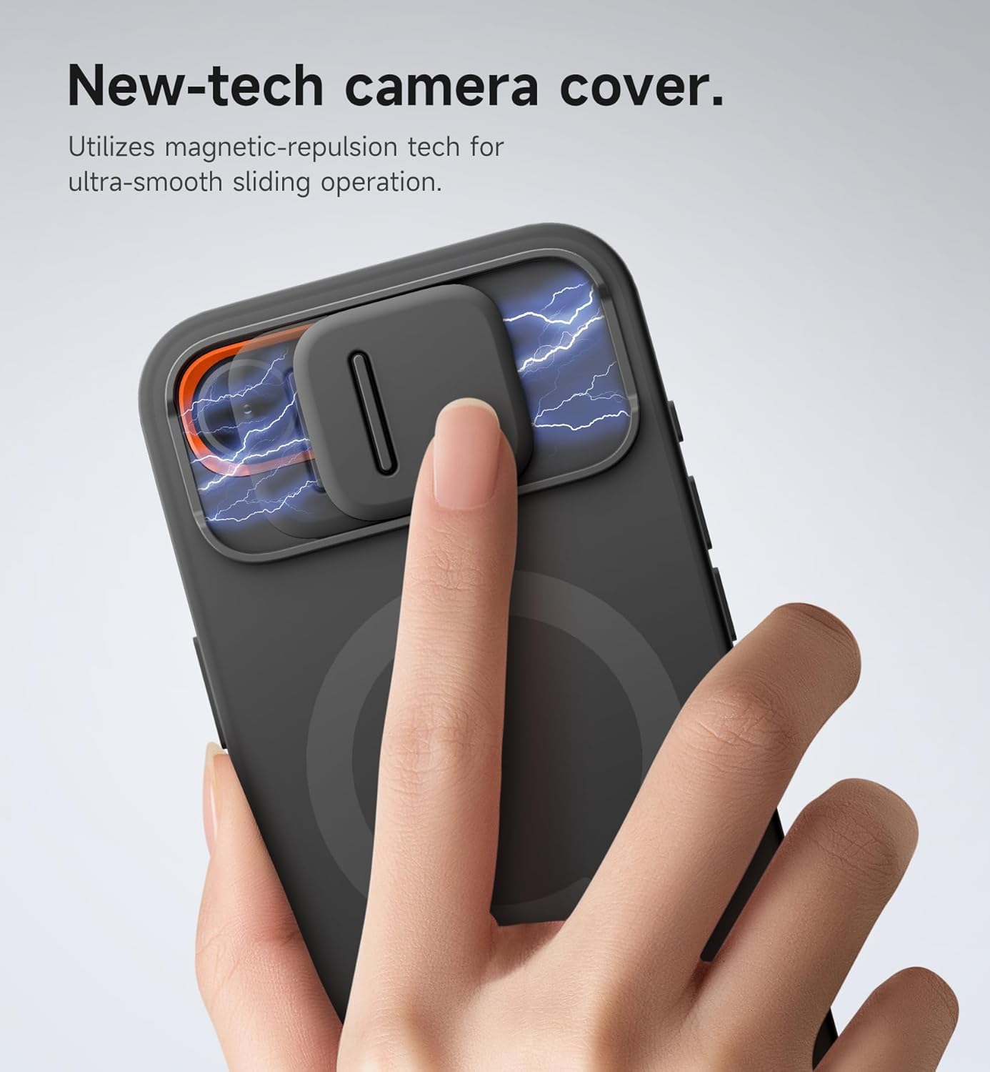 • Мощно магнитно закрепване: Този тънък калъф е с изключително силно магнитно закрепване (до 13,28 N), за да гарантира, че телефонът ви е здраво свързан с всички магнитни аксесоари, включително безжични зарядни устройства, държачи за превозни средства, захранване и др.