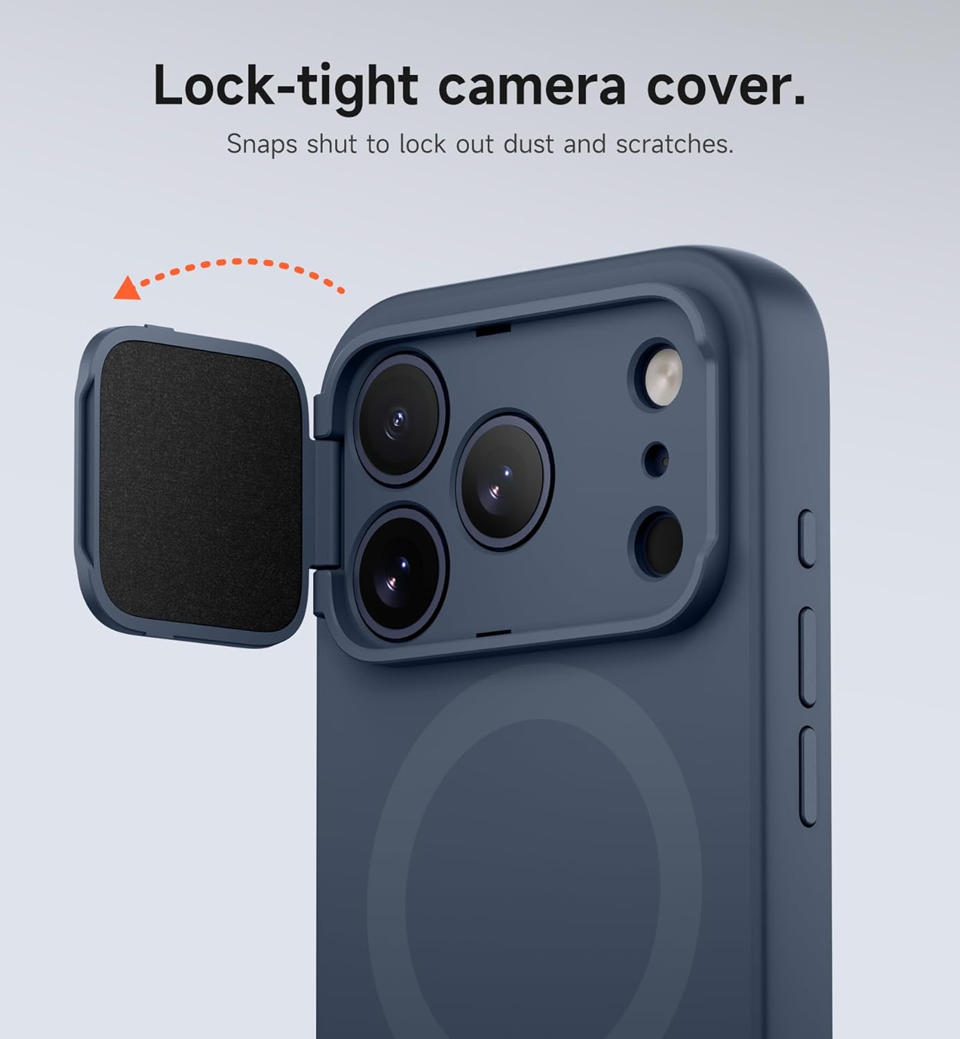 • Иновативна технология с плъзгащ се капак на камерата: С усъвършенствана технология за магнитно отблъскване, нашият плъзгащ се капак се плъзга в рамките на половин секунда. Той предпазва обективите на вашата камера от прах, разливане и повреди и е винаги готов за заснемане на перфектната снимка.