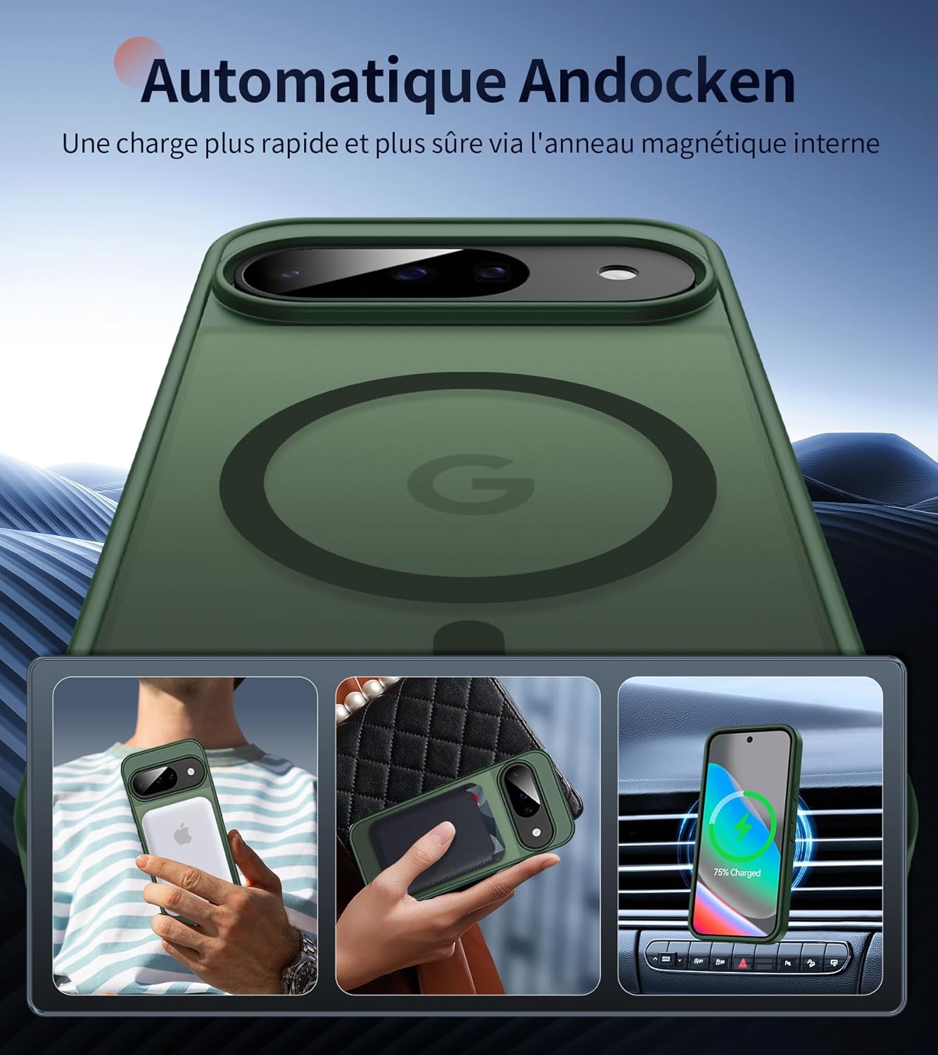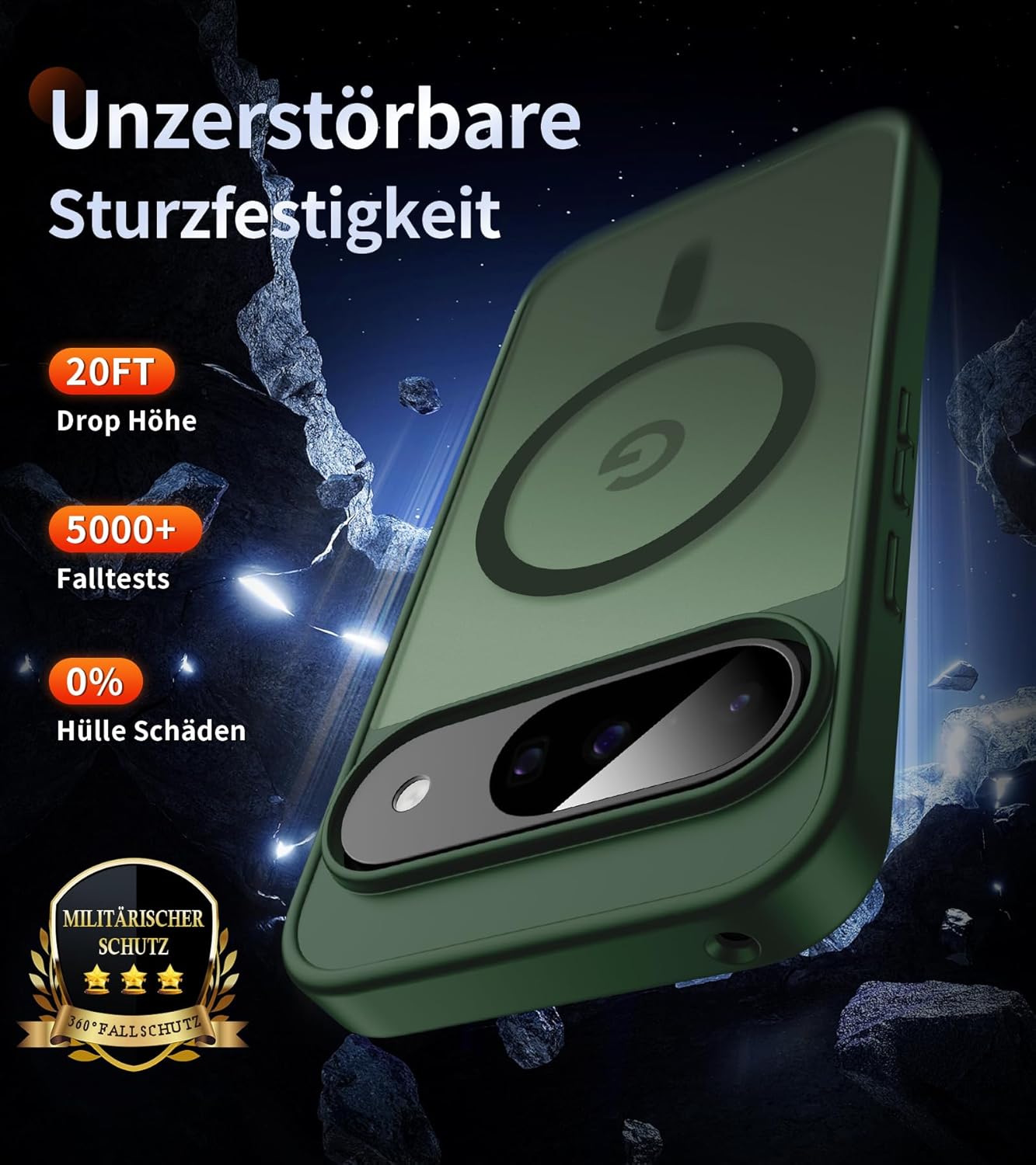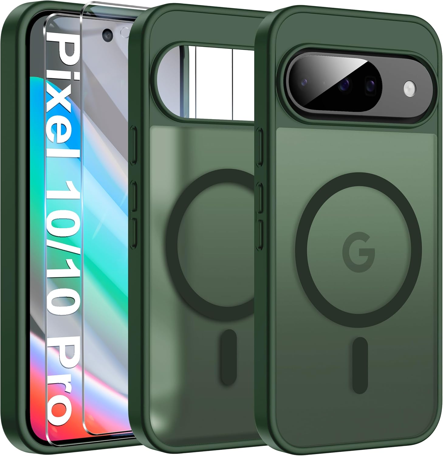 Магнитен калъф, съвместим с Google Pixel 10/10 Pro с 2 протектора за екран, военен стандарт за защита, калъф за мобилен телефон, удароустойчив, устойчив на надраскване, матов, полупрозрачен защитен