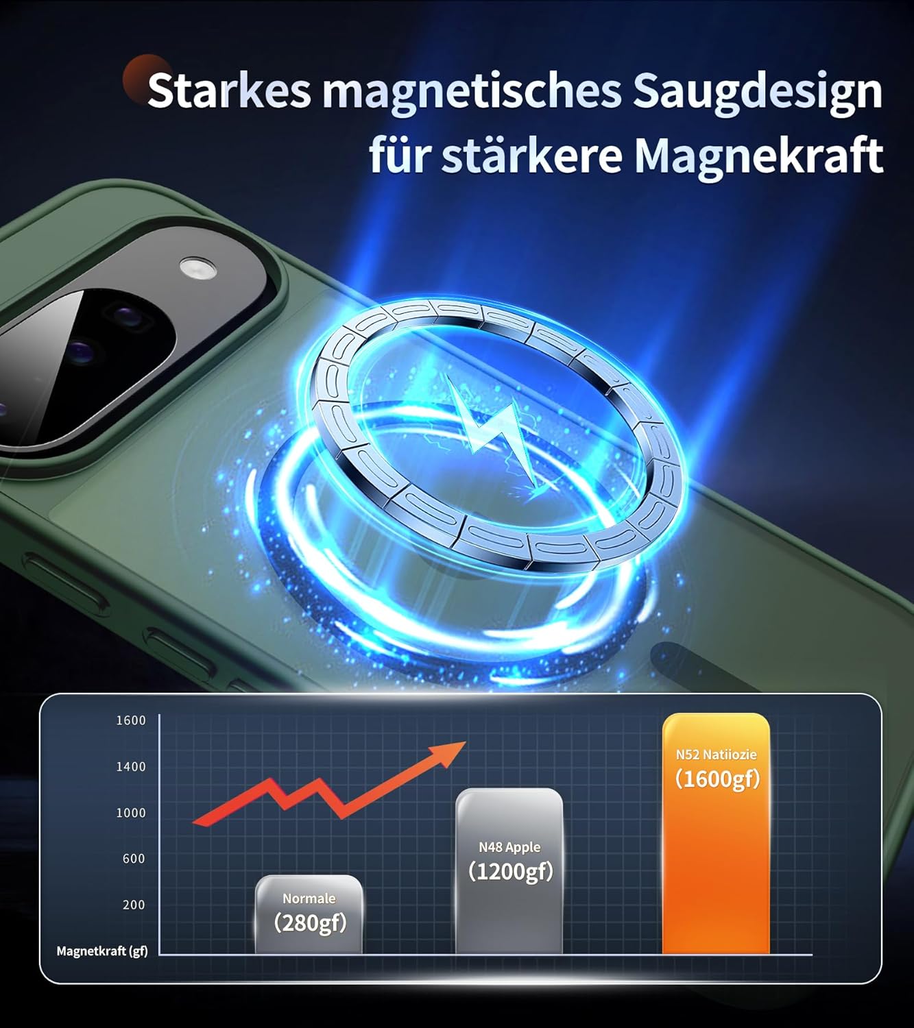 • Силна магнитна сила: мощните вградени магнити в калъфа могат да укрепят магнитната връзка и да осигурят автоматично подравняване, за да направят зареждането с MagSafe по-бързо и безопасно от преди. Съвместим е с всички аксесоари на MagSafe, като портфейл, държач за пръстени и външна батерия. Независимо дали сте в ежедневието или пътувате, винаги можете да се насладите на практичността, която калъфът предлага.