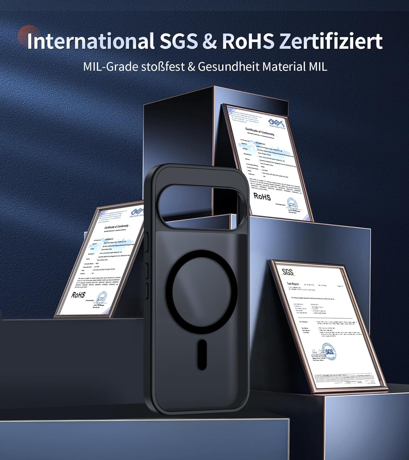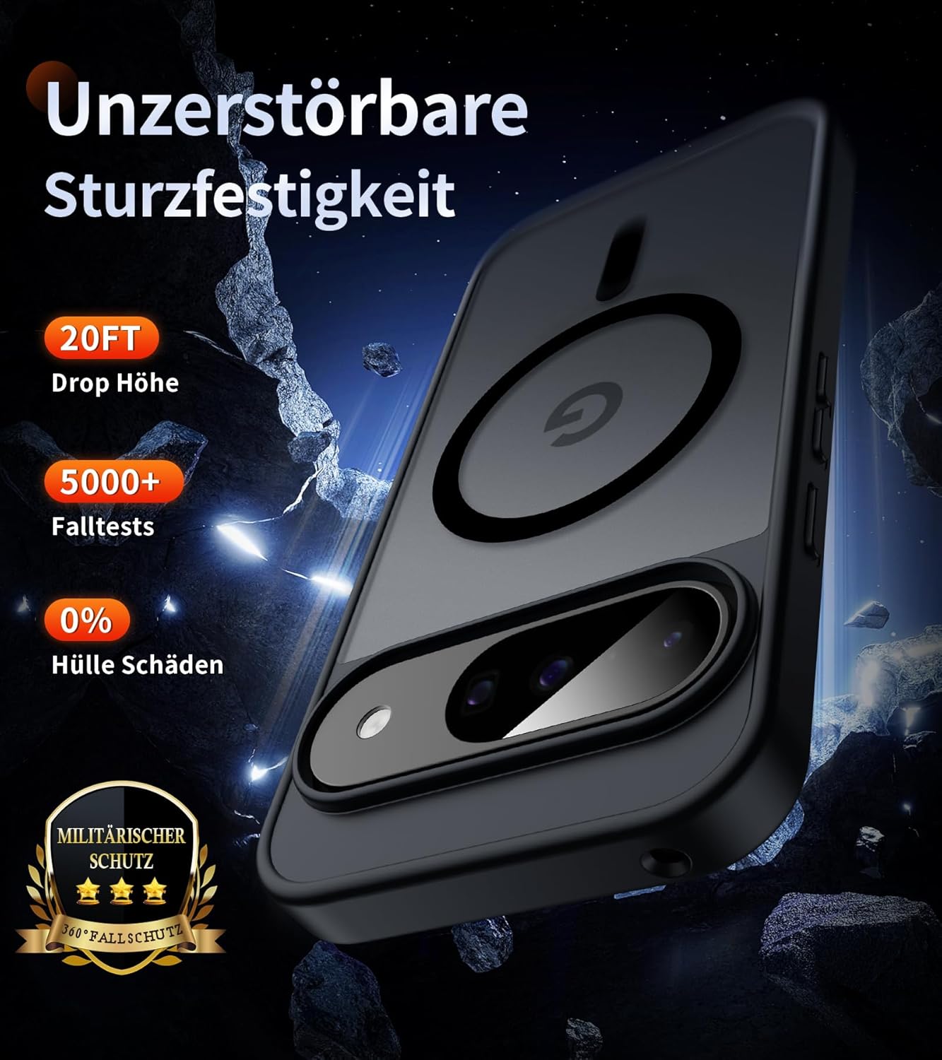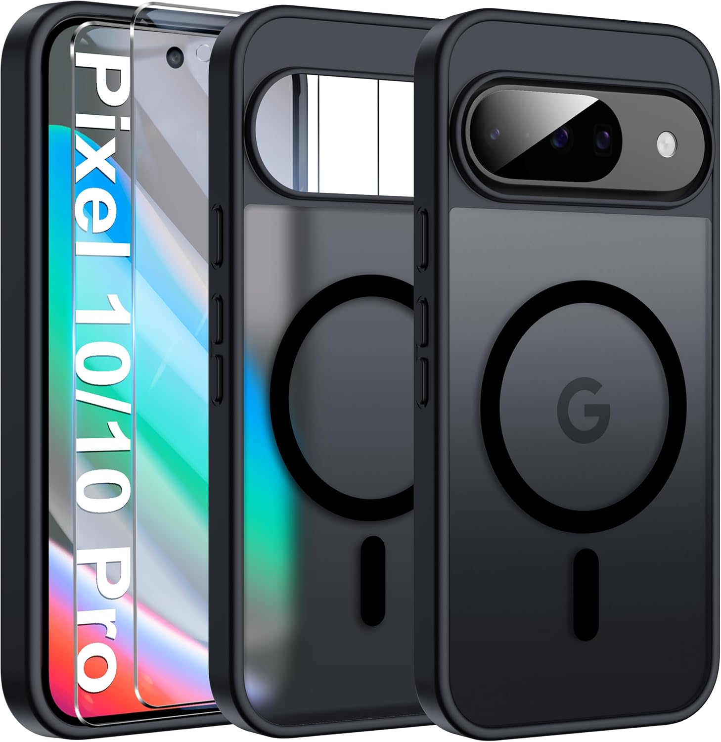 Магнитен калъф, съвместим с Google Pixel 10/10 Pro/9/9 Pro с 2 протектора за екран, военна стандартна защита, калъф за мобилен телефон, удароустойчив, устойчив на надраскване, матов, прозрачен