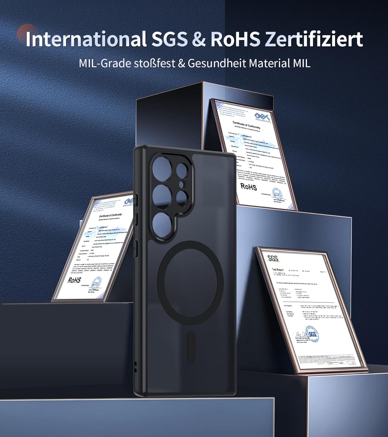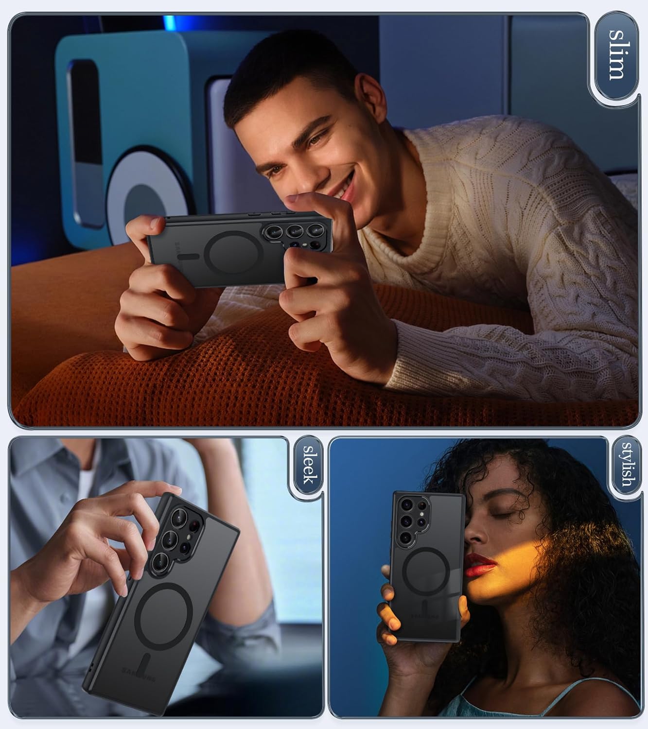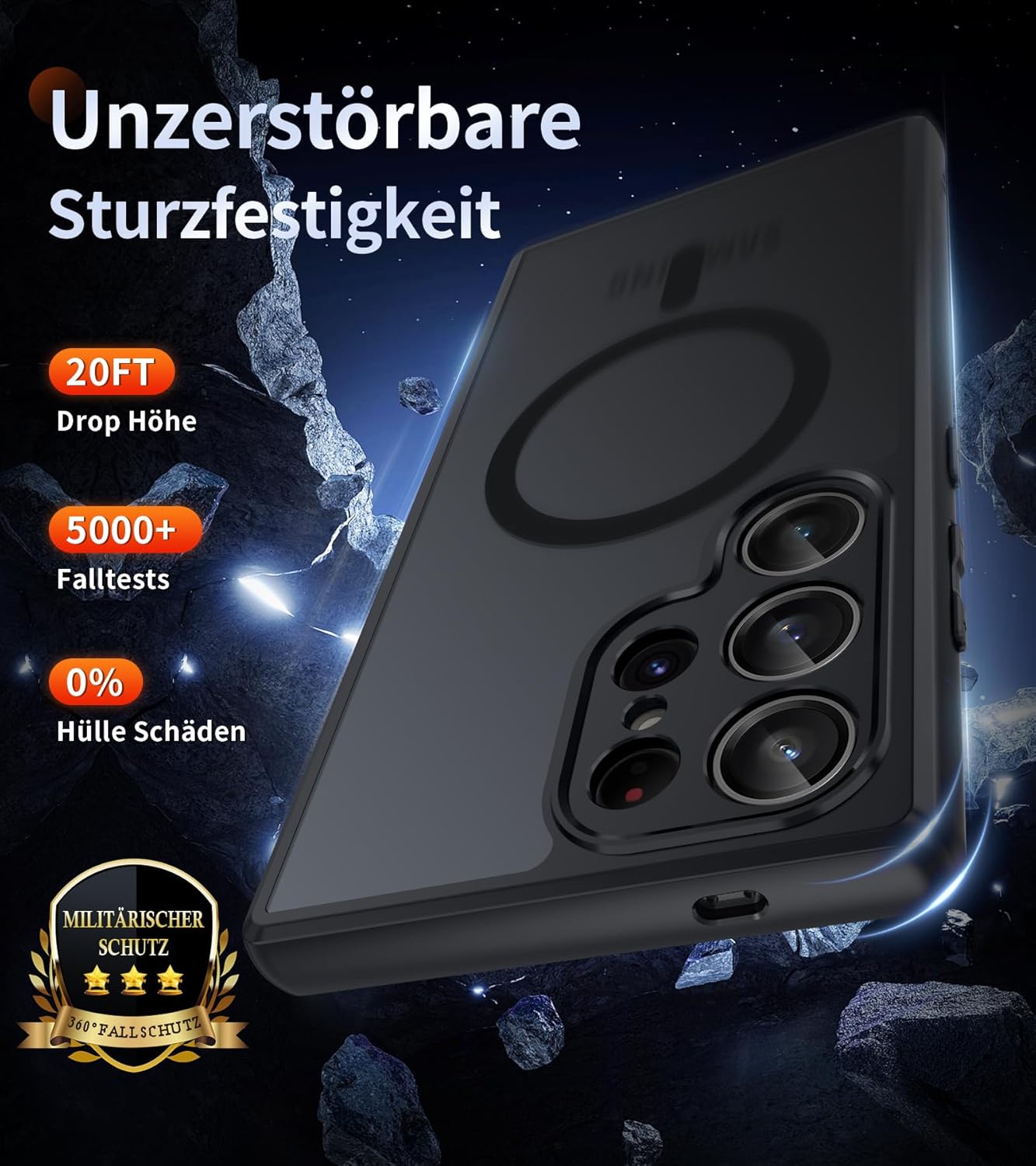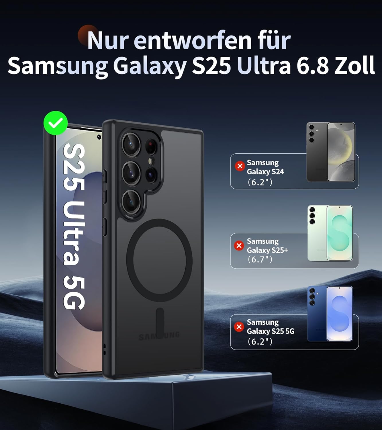 Магнитен калъф, съвместим с Samsung Galaxy S25 Ultra MagSafe с 2 протектора за екран, пълна защита на камерата, калъф за мобилен телефон за S25 Ultra, удароустойчив, тънък, прозрачен, матов, защитен