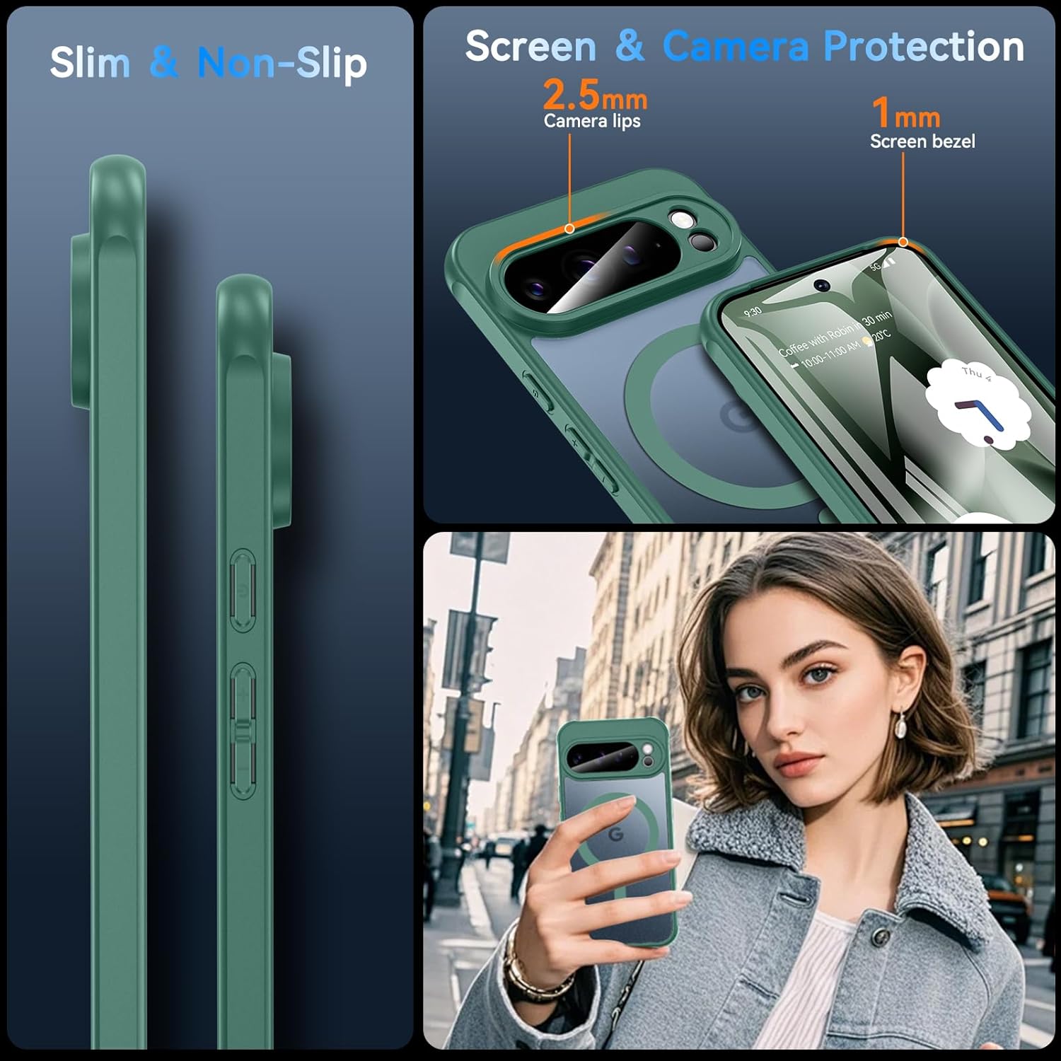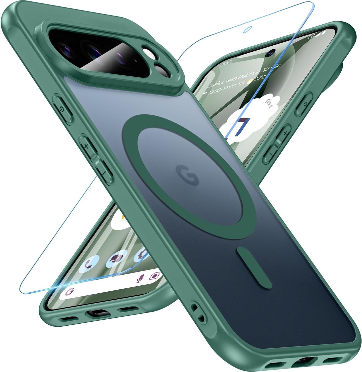Магнитен калъф за Google Pixel 10 Pro XL със закалено стъкло, калъф за Pixel 10 Pro XL, военен защитен калъф за мобилен телефон, матов прозрачен, здрав, твърд PC защитен филм, защитен калъф