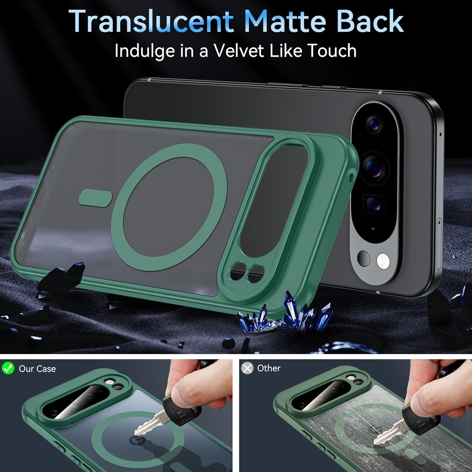 • Приятно усещане, без прах, без пожълтяване: Луксозен матов полупрозрачен дизайн. Гърбът е изработен от матиран, полупрозрачен, матиран поликарбонат (PC) за кадифено усещане.
