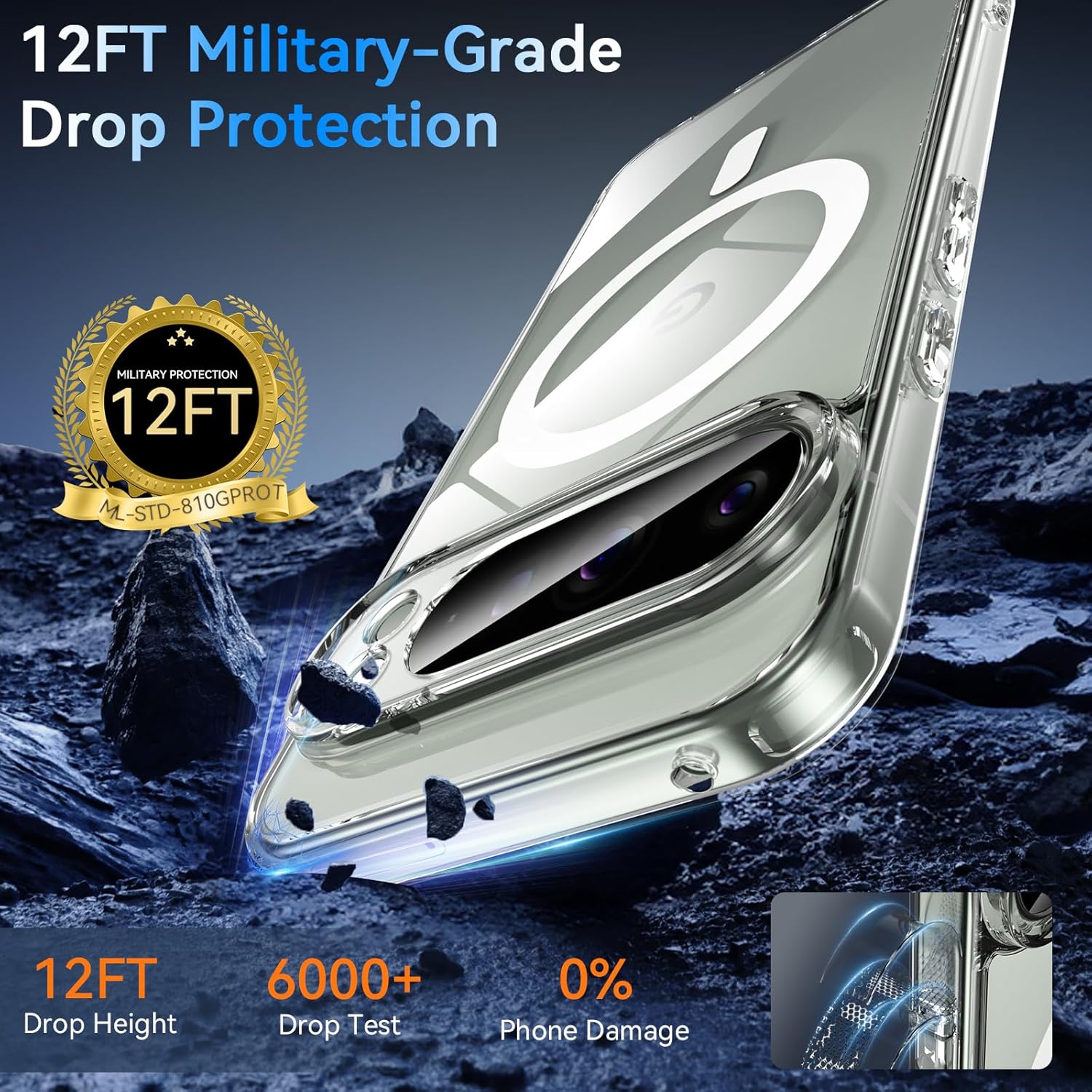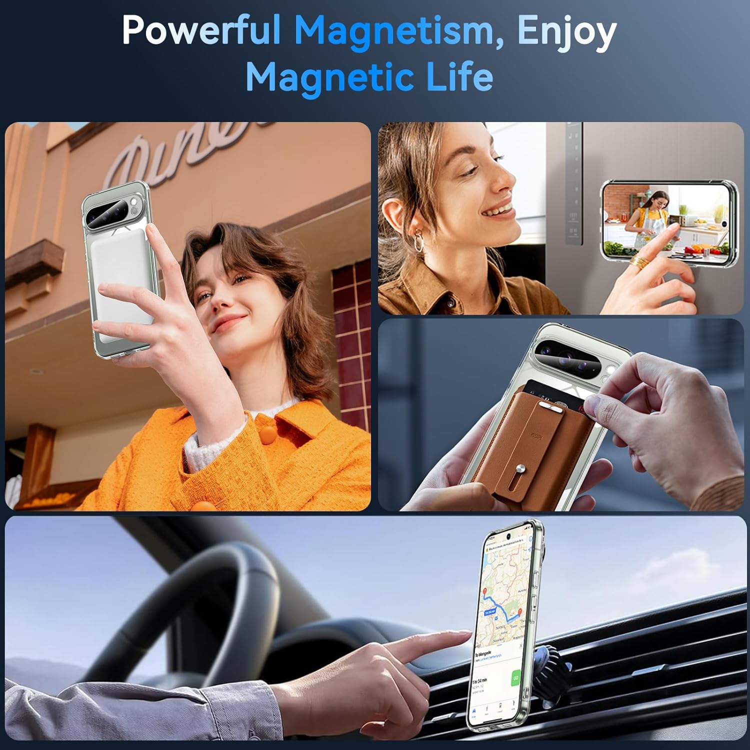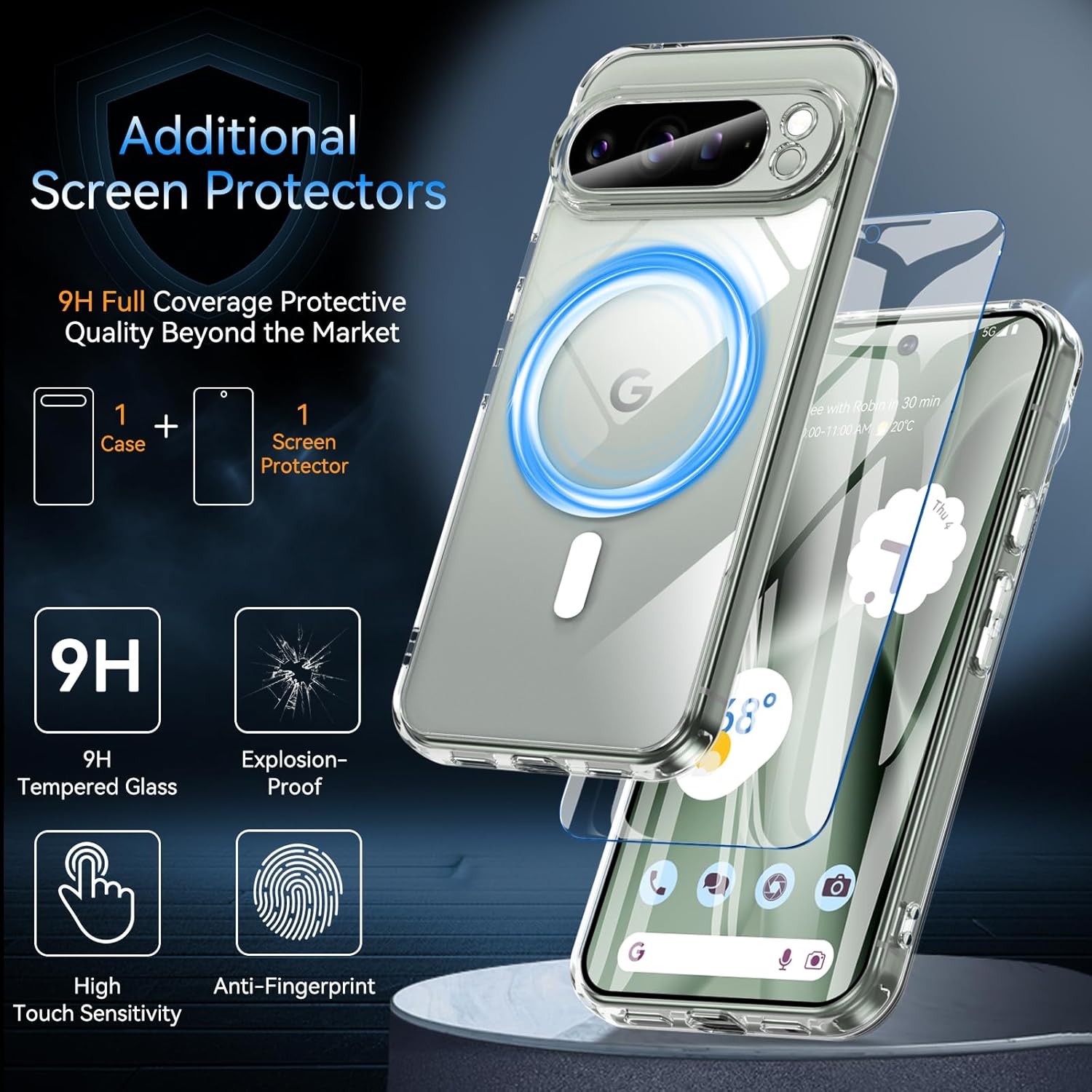 Магнитен калъф за Google Pixel 10 Pro XL със закалено стъкло, калъф за Pixel 10 Pro XL, военен защитен калъф за мобилен телефон, матов, прозрачен, здрав, твърд PC защитен калъф (прозрачен)