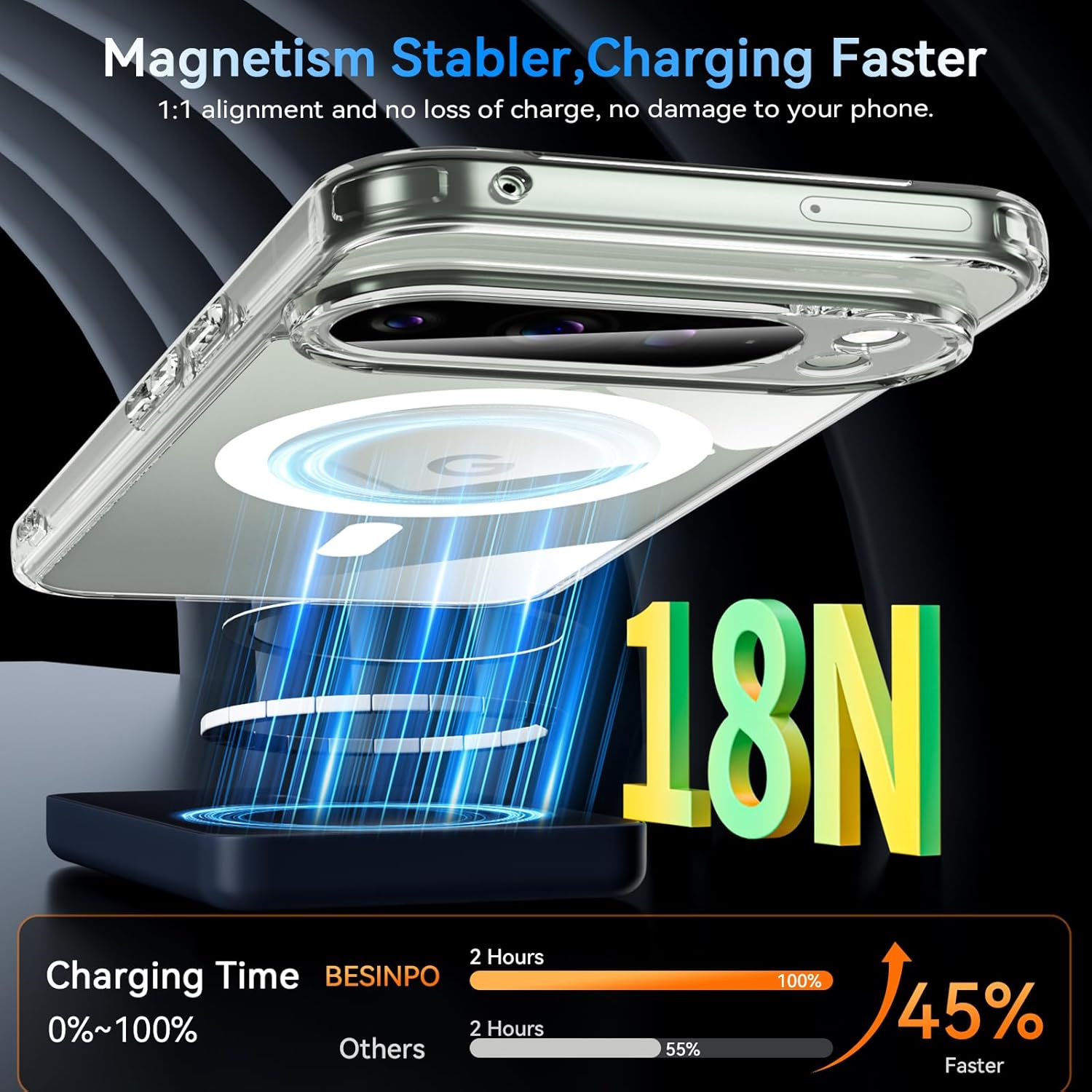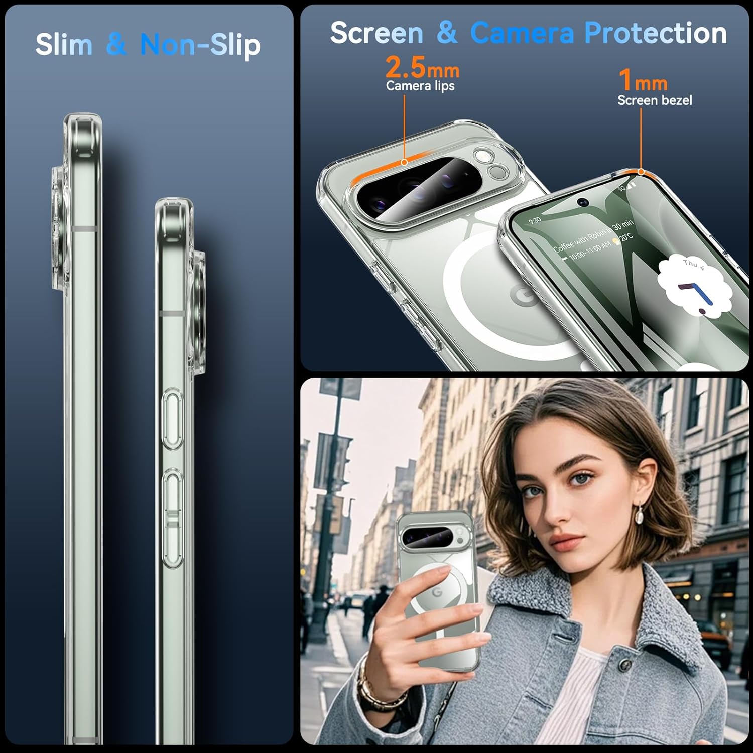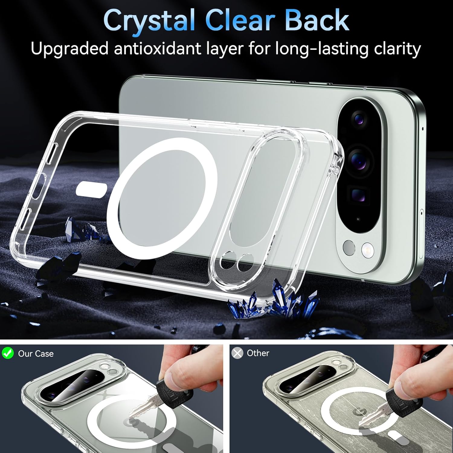 Магнитен калъф за Google Pixel 10 Pro XL със закалено стъкло, калъф за Pixel 10 Pro XL, военен защитен калъф за мобилен телефон, матов, прозрачен, здрав, твърд PC защитен калъф (прозрачен)