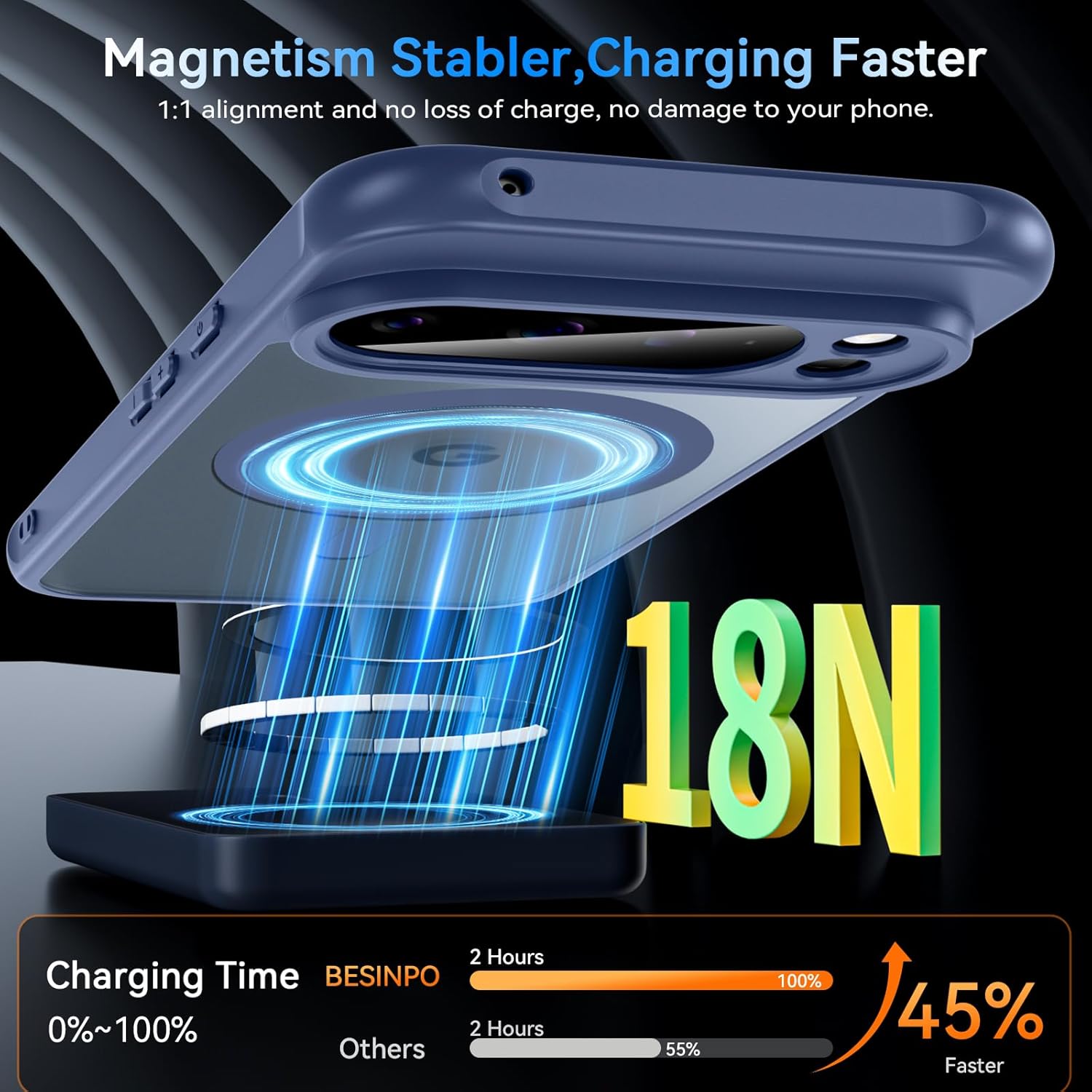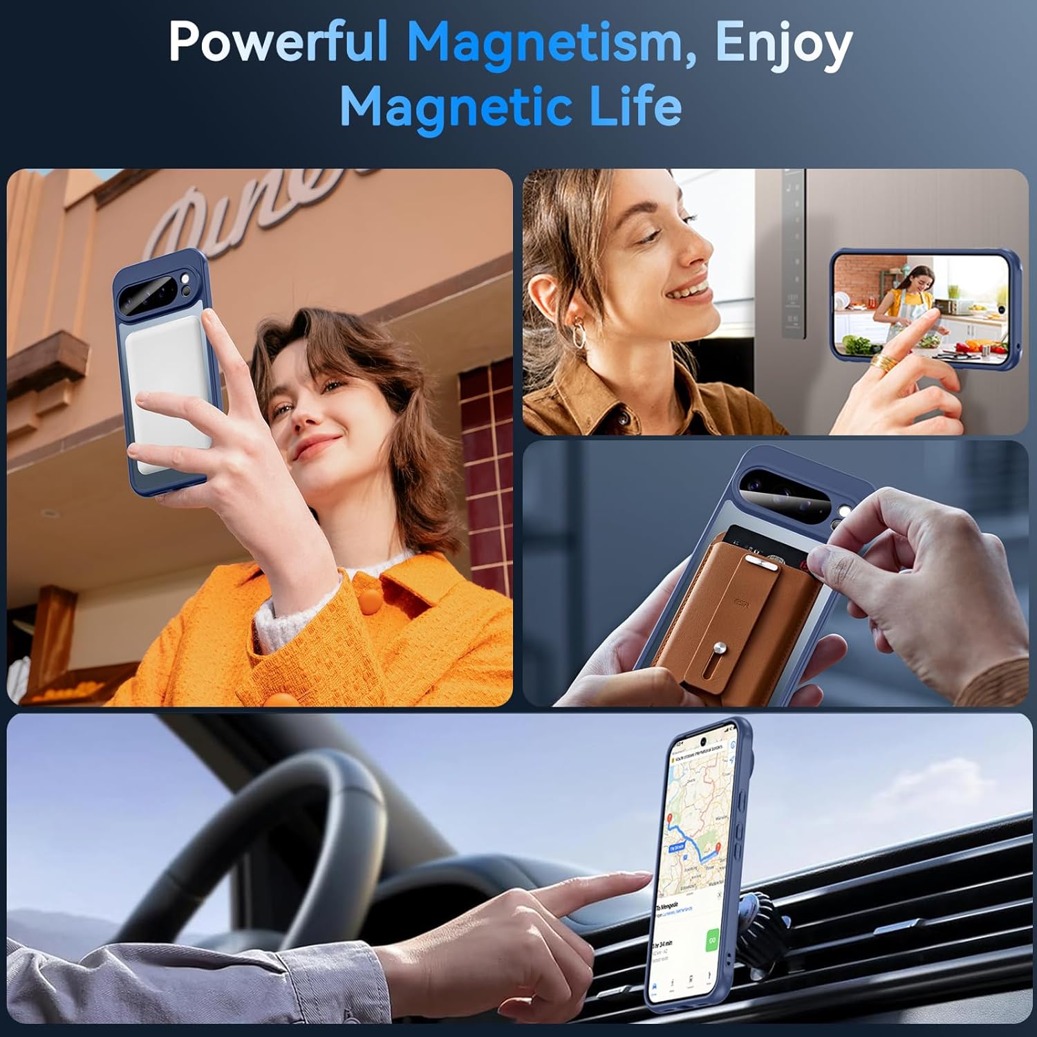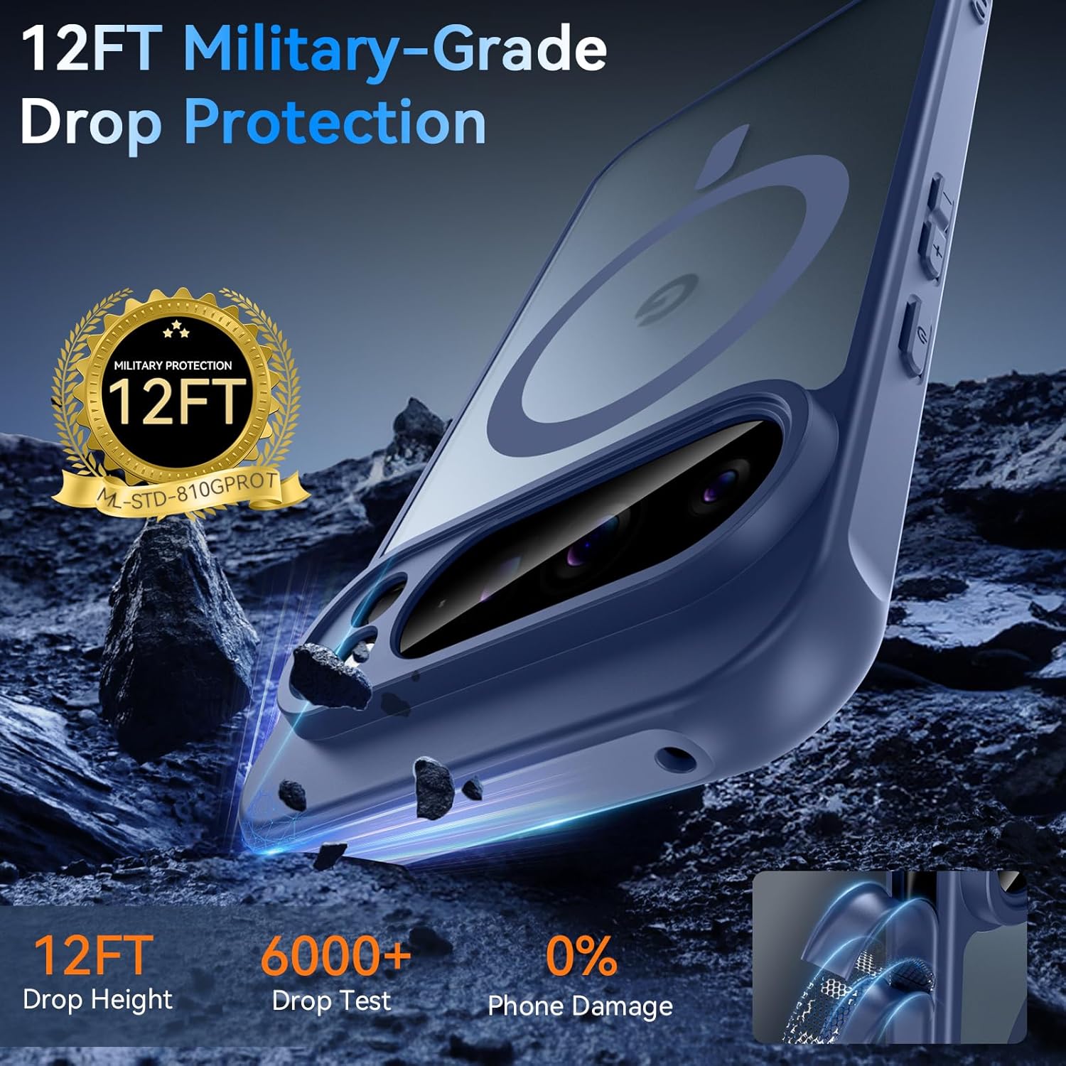Магнитен калъф за Google Pixel 10 Pro XL със закалено стъкло, военна защита, калъф за мобилен телефон за Pixel 10 Pro XL, матов, прозрачен, здрав, защитен филм, защитен калъф (син)