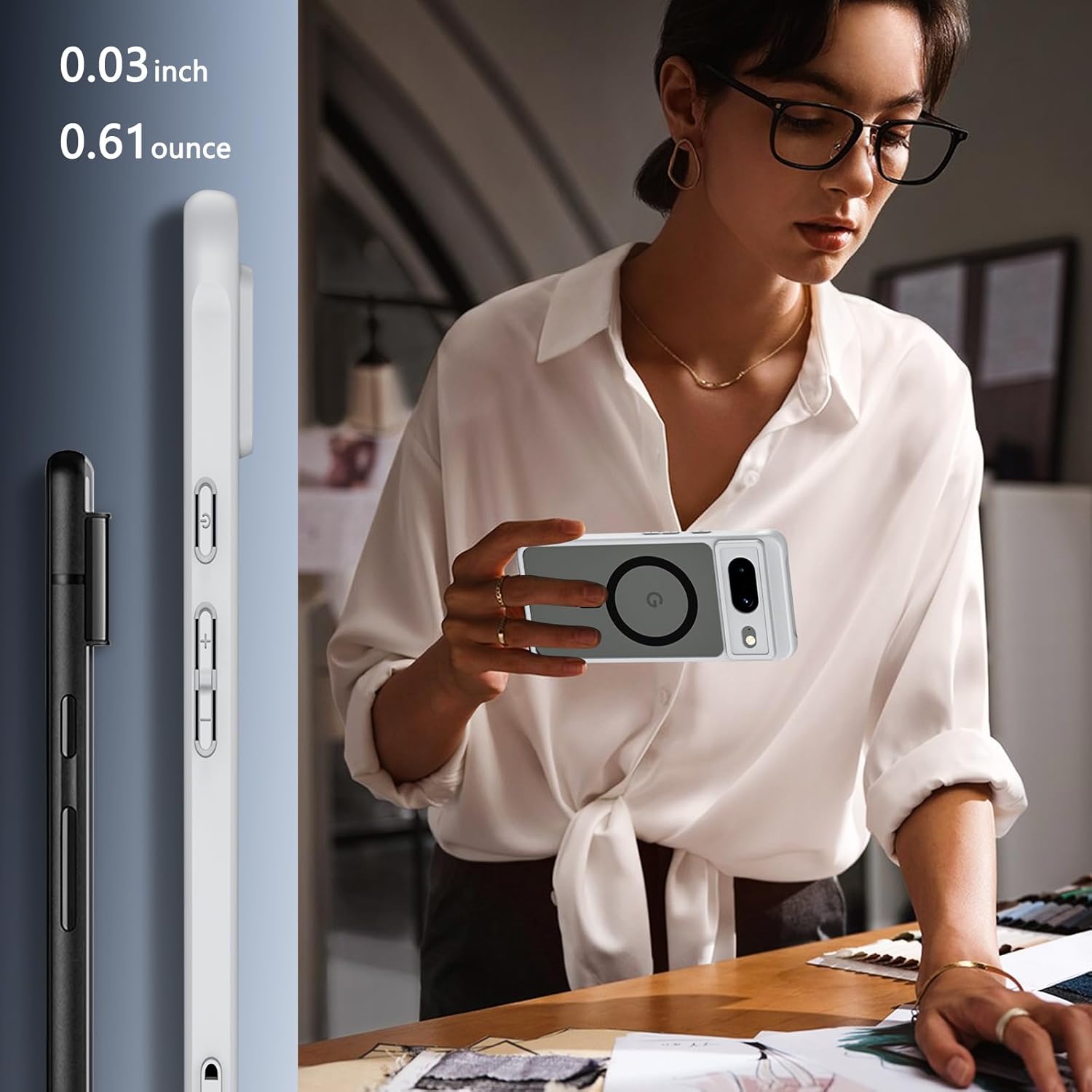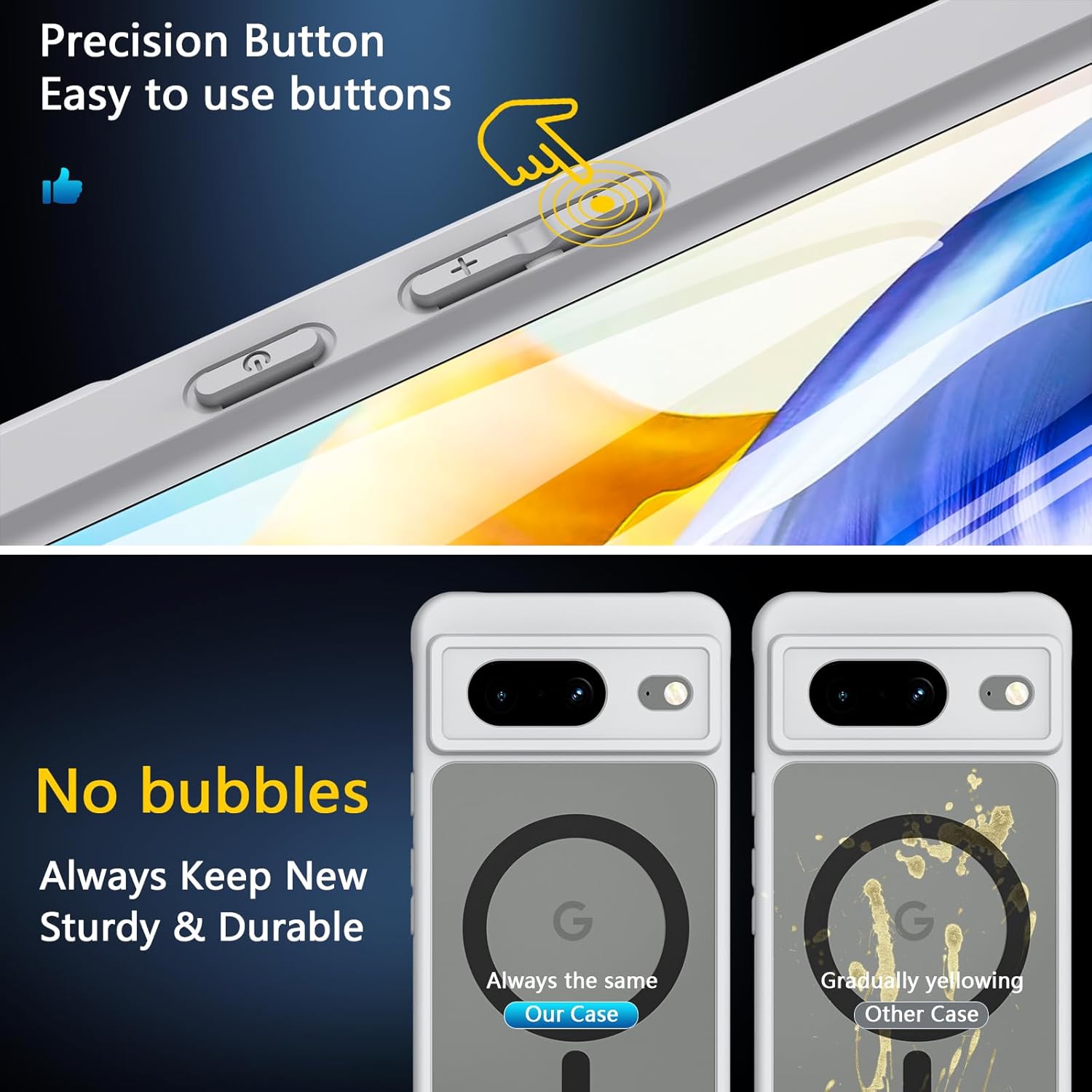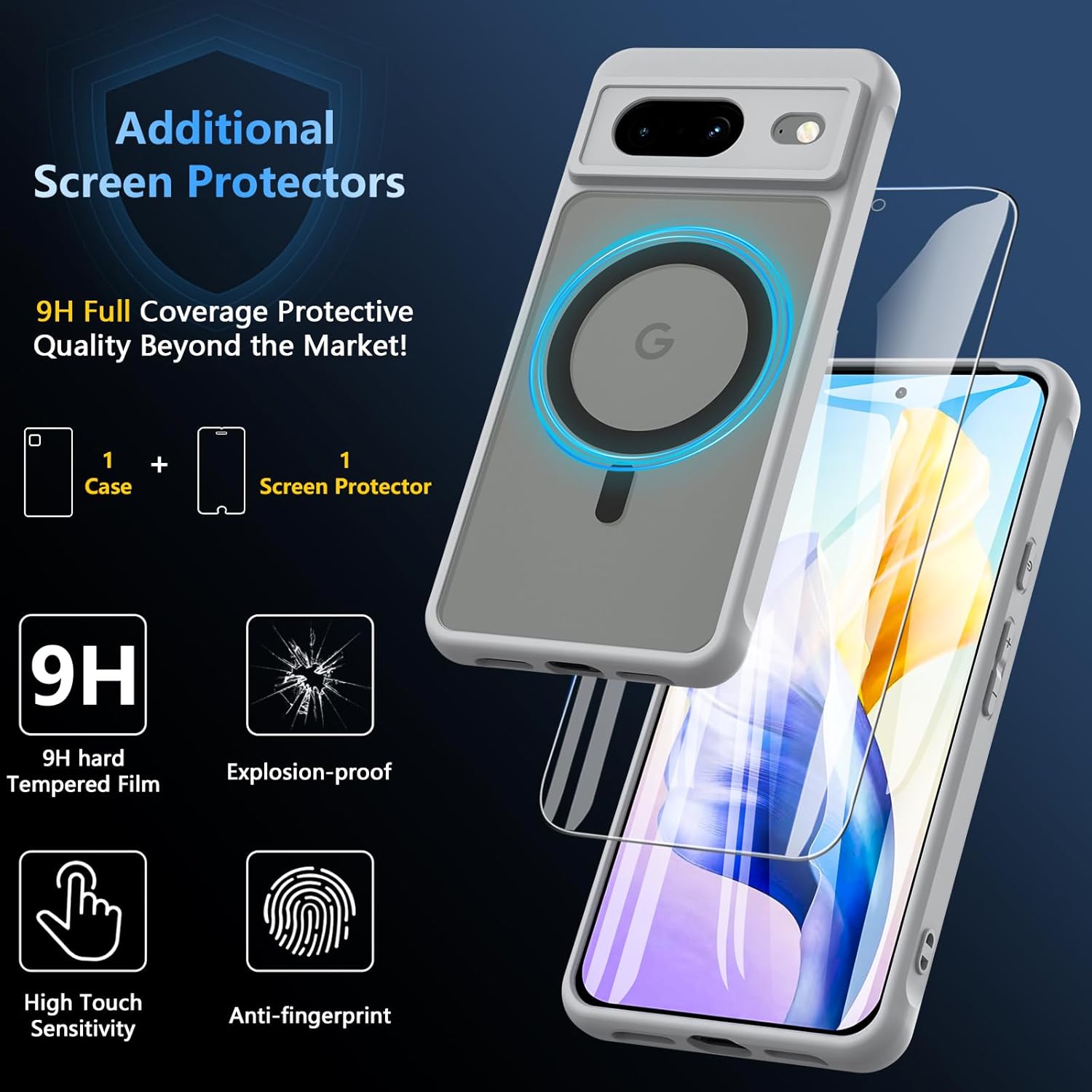 Магнитен калъф за Google Pixel 8, съвместим с Magsafe, защита от военни изисквания, закалено стъкло, матов прозрачен, удароустойчив, устойчив на надраскване, здрав защитен калъф за Pixel 8 5G (сив)