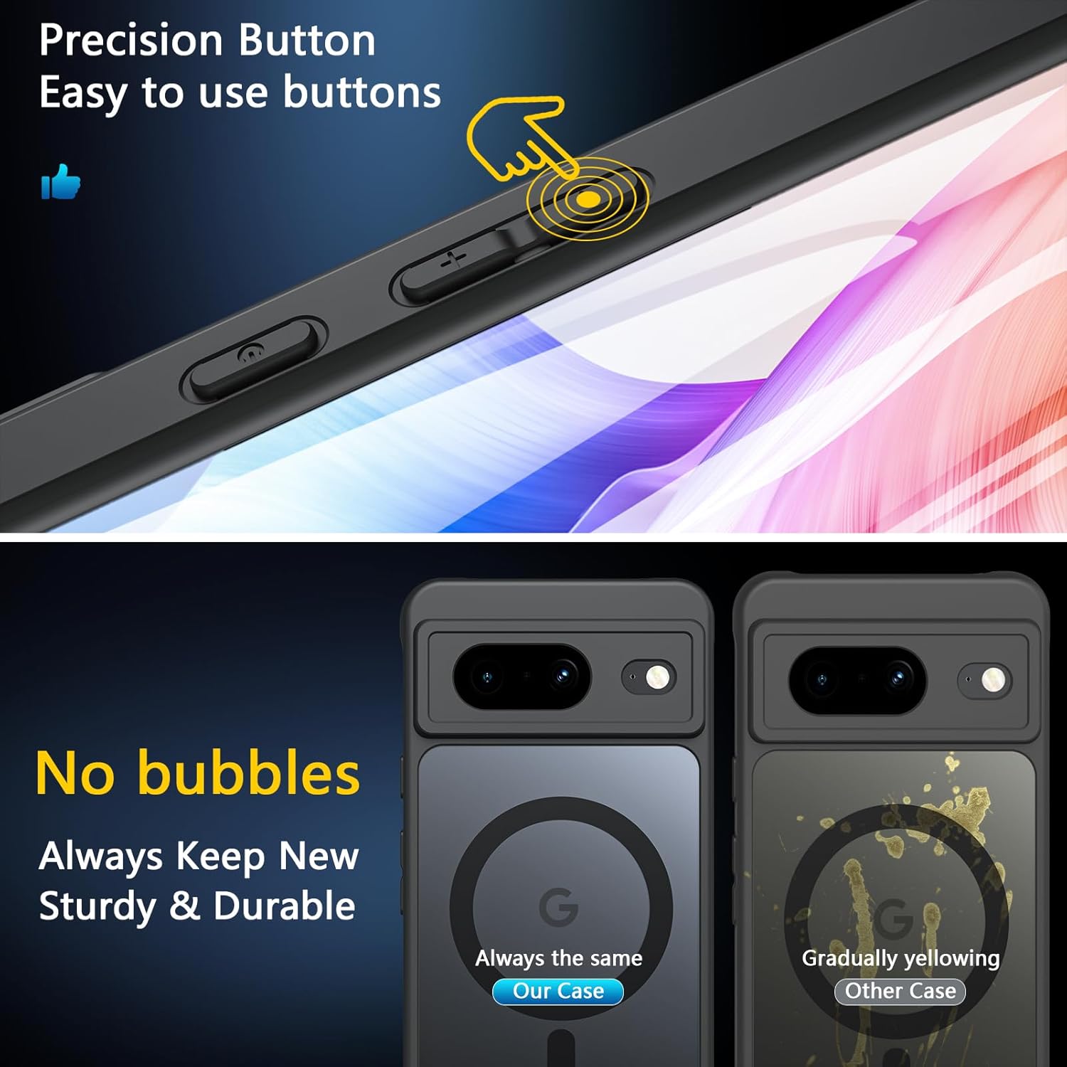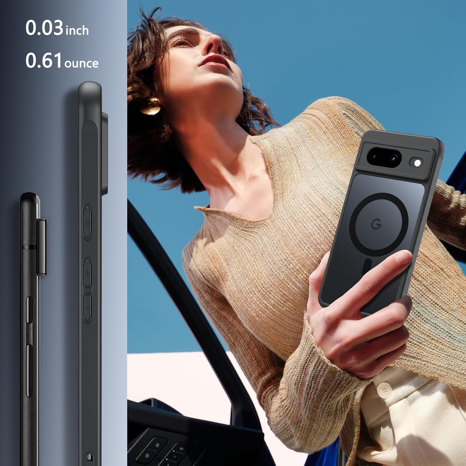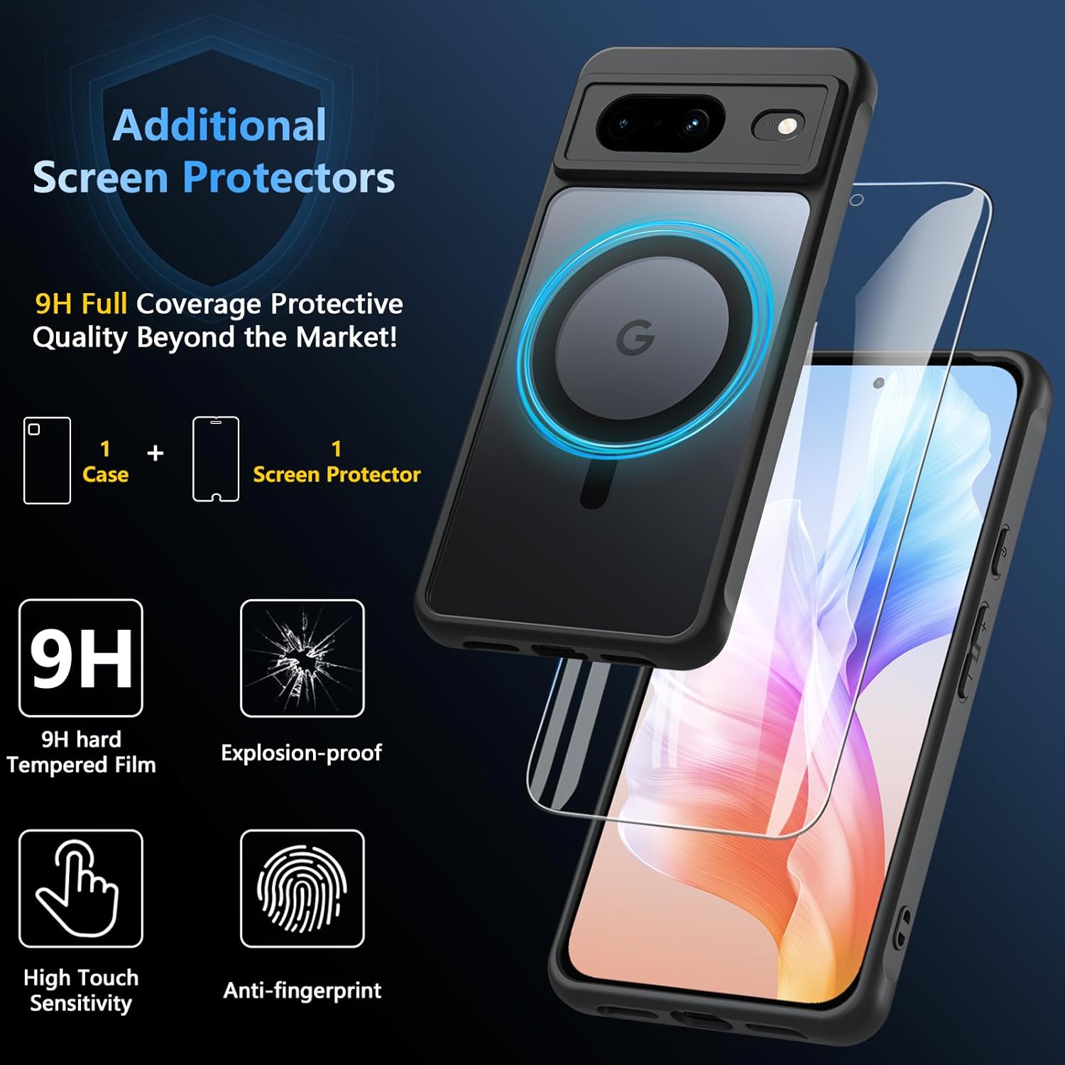 Магнитен калъф за Google Pixel 8, съвместим с Magsafe, защита от военни условия, закалено стъкло, матов прозрачен, удароустойчив, устойчив на надраскване, здрав защитен калъф за Pixel 8 5G 2023, черен