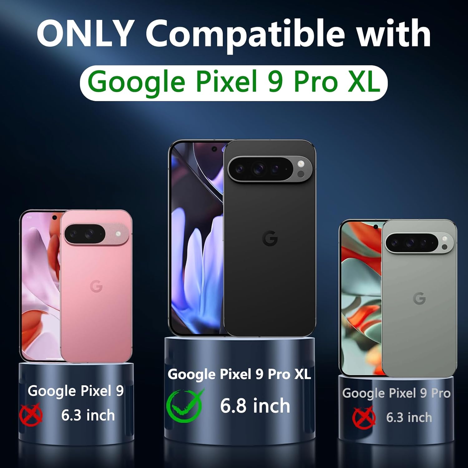 Магнитен калъф за Google Pixel 9 Pro XL, със закалено стъкло с военен клас защита, матов прозрачен здрав защитен калъф за Pixel 9 Pro XL (черен)