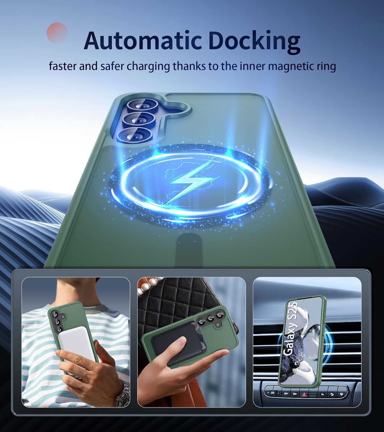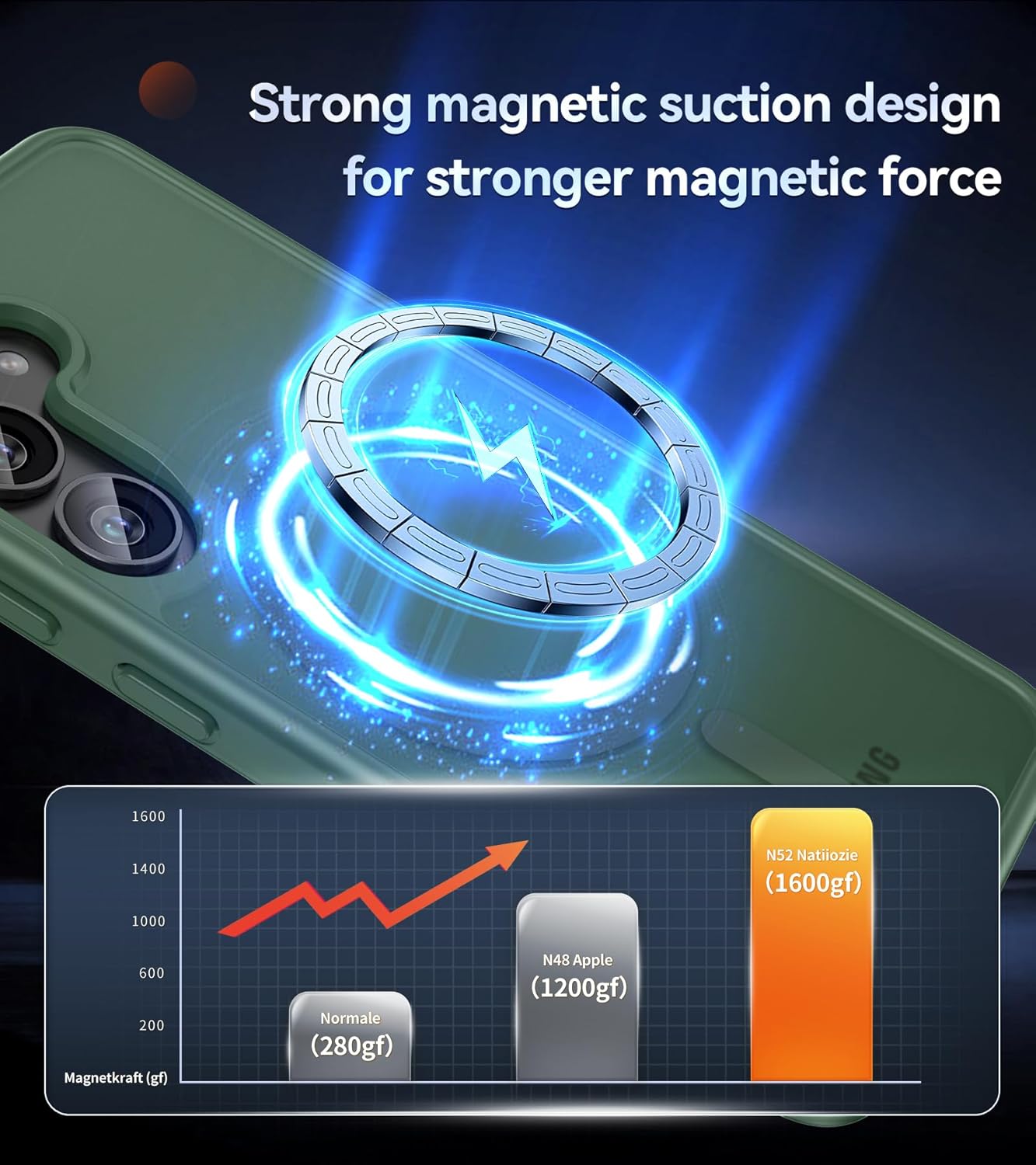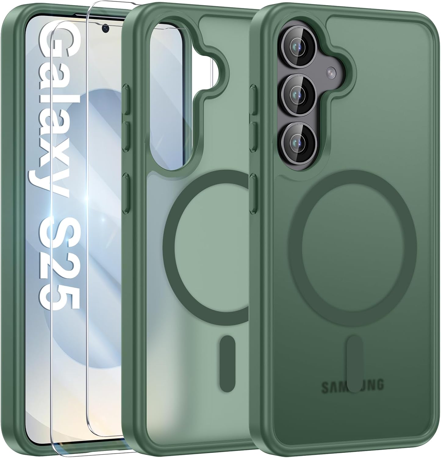 Магнитен калъф за мобилен телефон, съвместим със Samsung Galaxy A16, съвместим с MagSafe с 2 протектора за екран, пълна защита на камерата, удароустойчив защитен калъф (тъмнозелен, Samsung Galaxy A16)