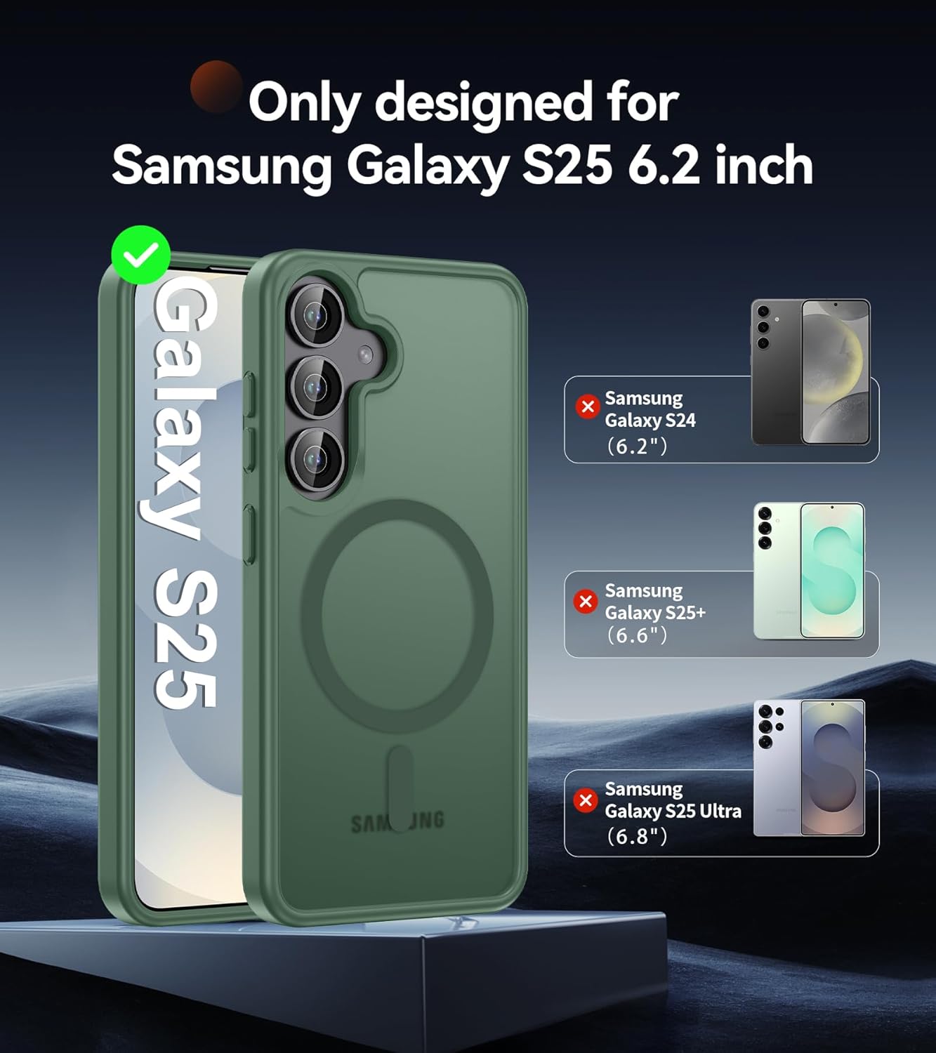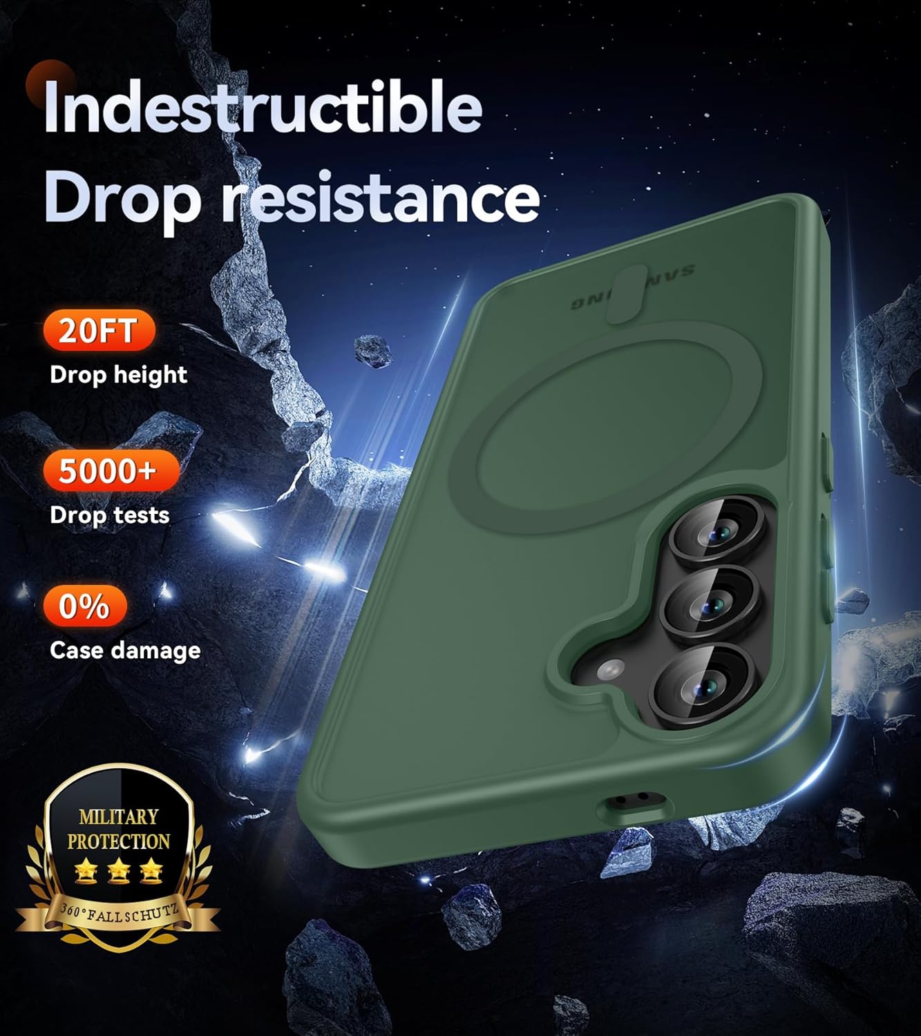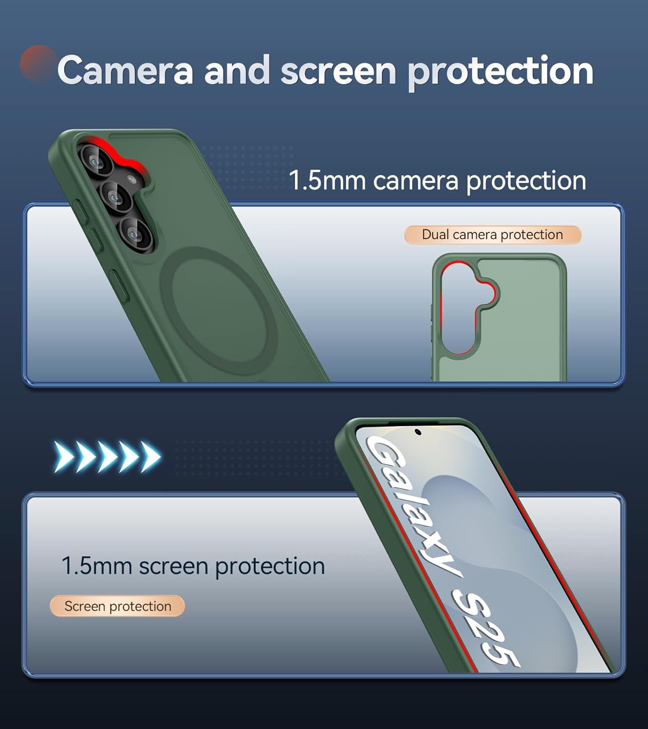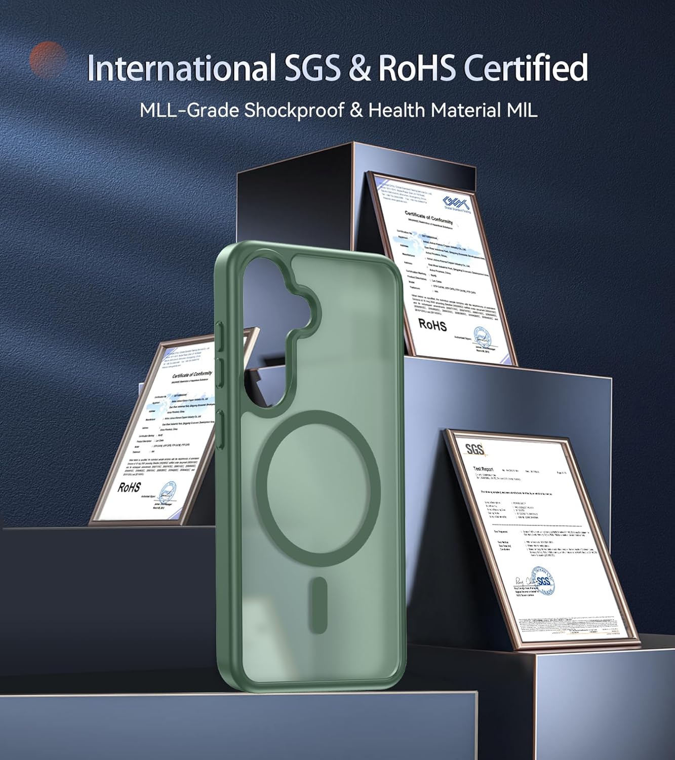 Магнитен калъф за мобилен телефон, съвместим със Samsung Galaxy A16, съвместим с MagSafe с 2 протектора за екран, пълна защита на камерата, удароустойчив защитен калъф (тъмнозелен, Samsung Galaxy A16)