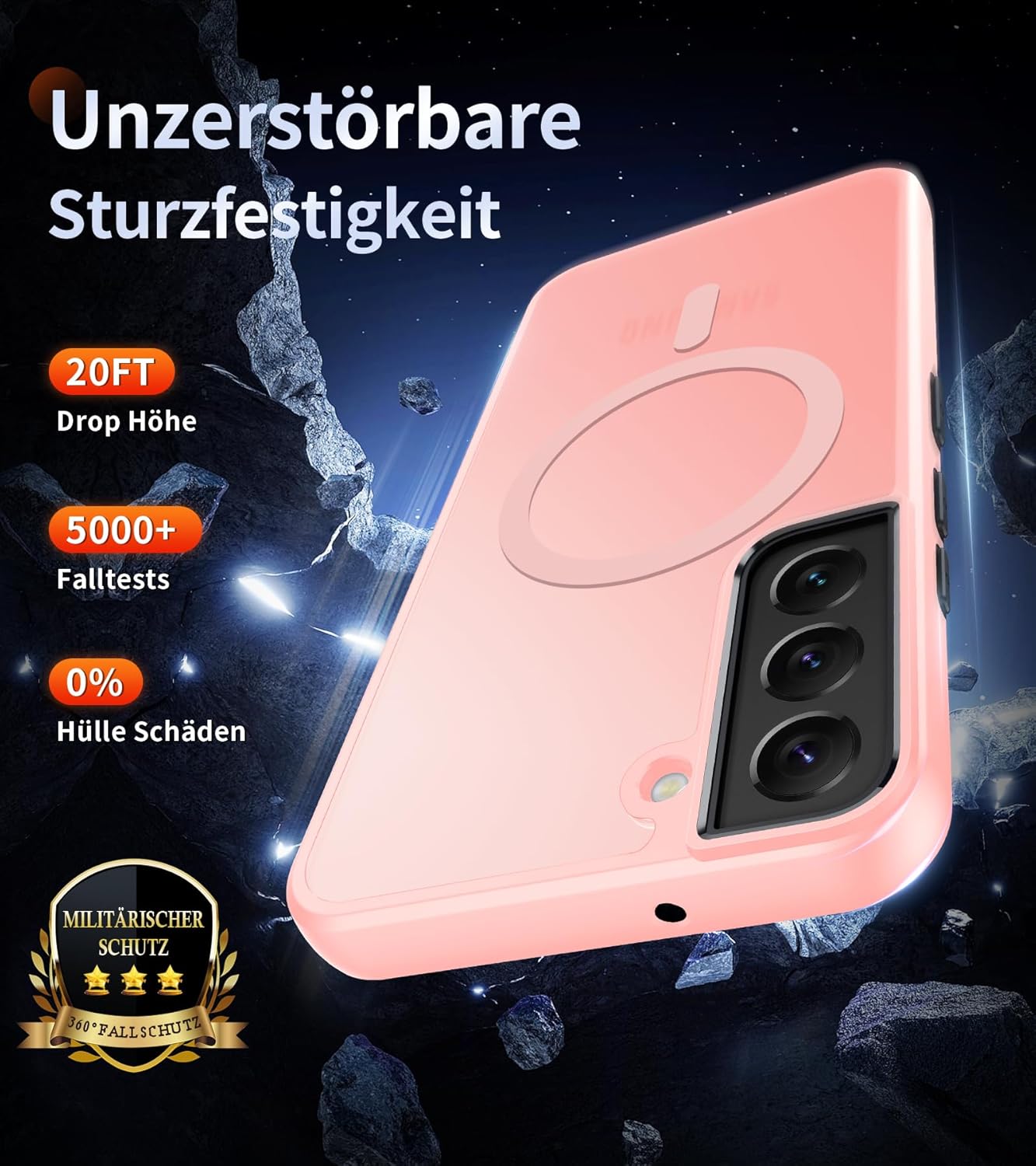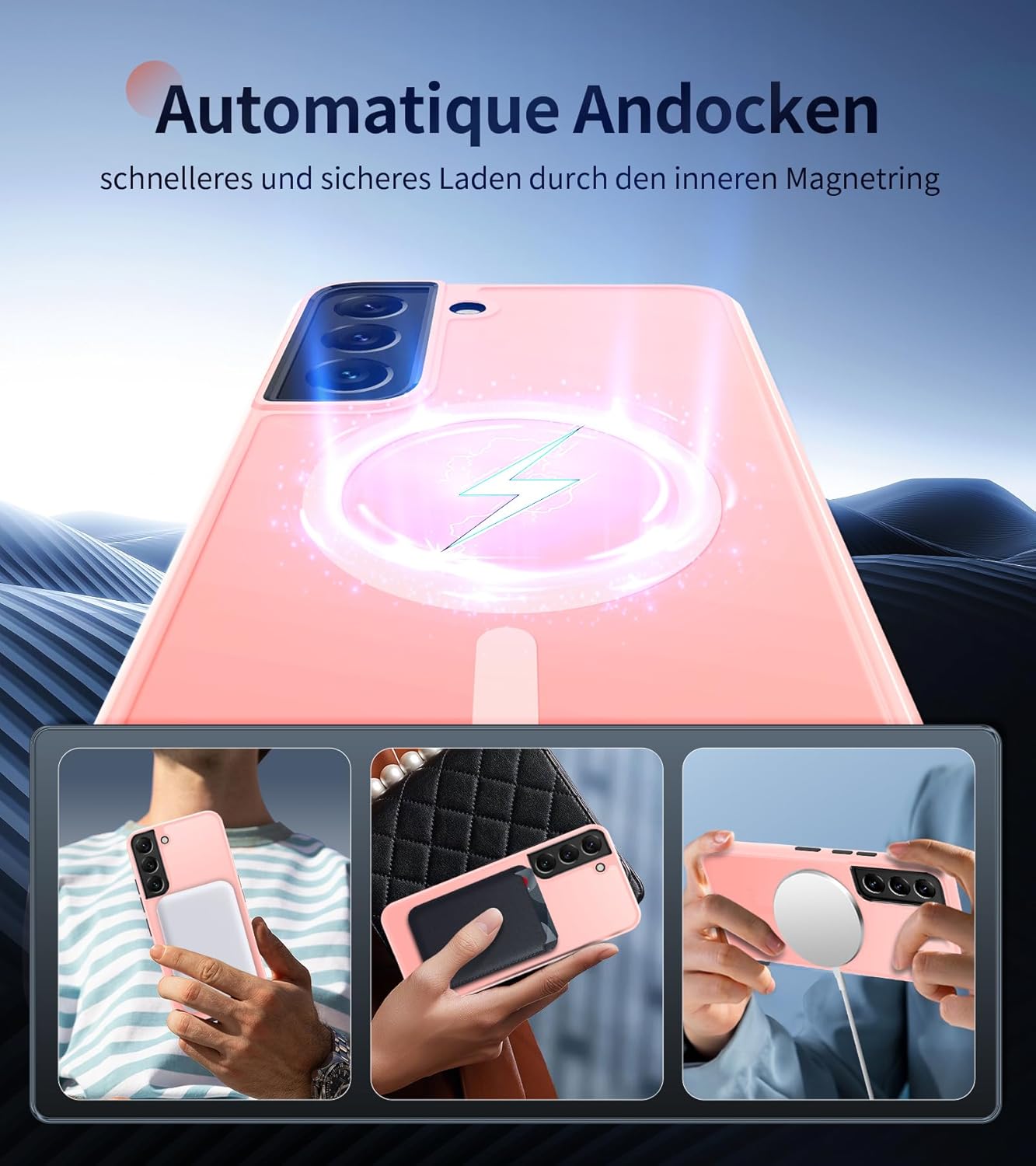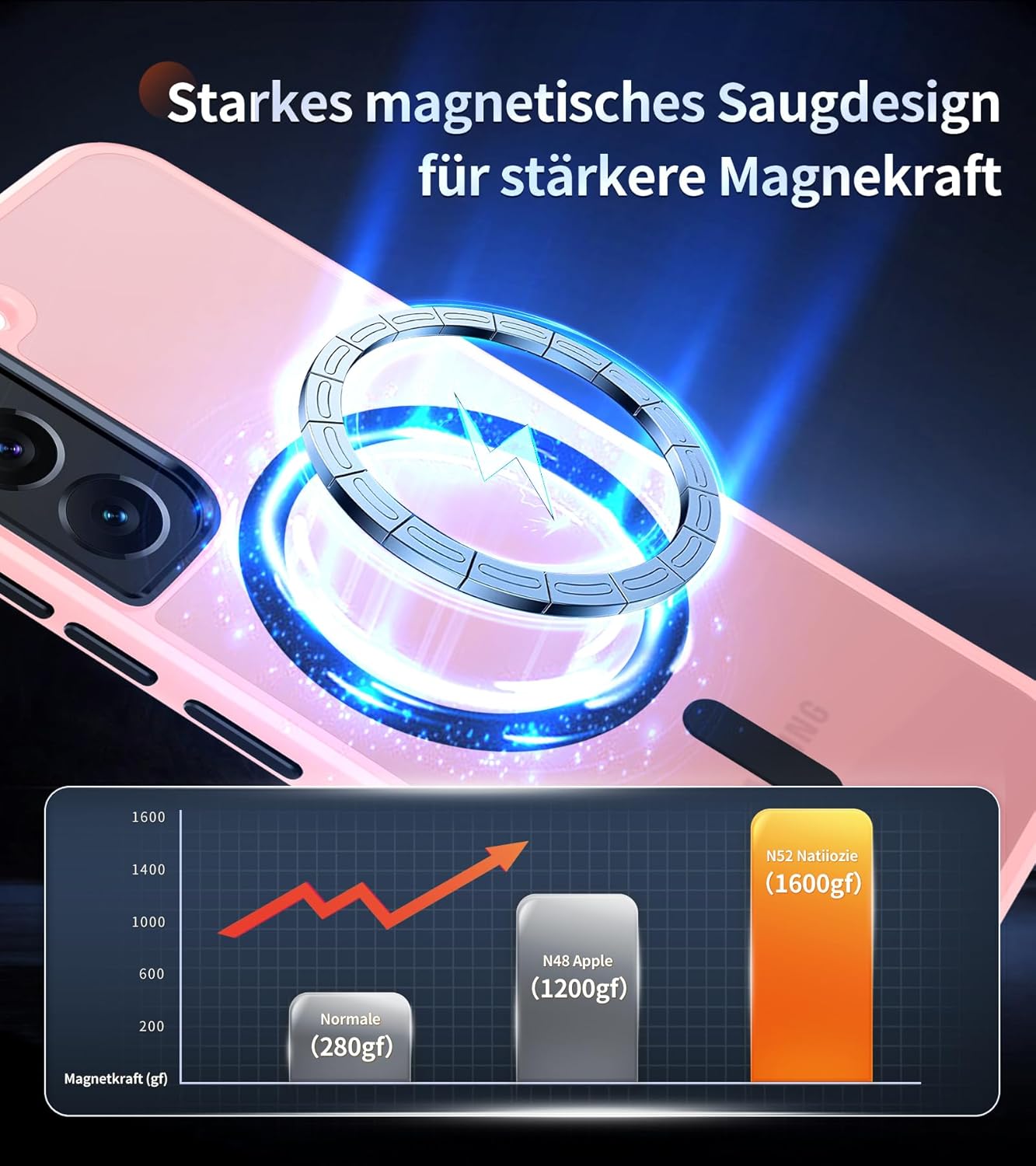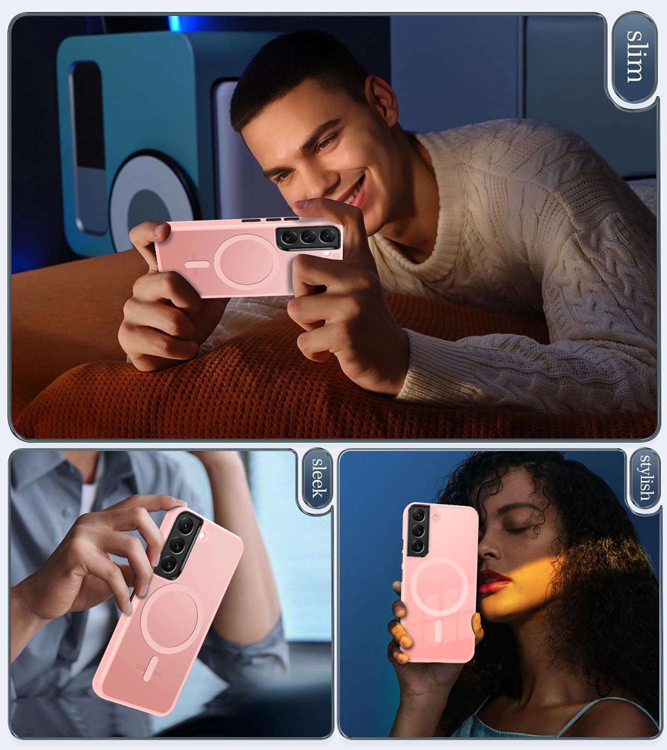 Магнитен калъф за мобилен телефон, съвместим със Samsung Galaxy S22, съвместим с MagSafe с 2 защитни филма, пълна защита на камерата, удароустойчив, тънък, полупрозрачен матов защитен калъф