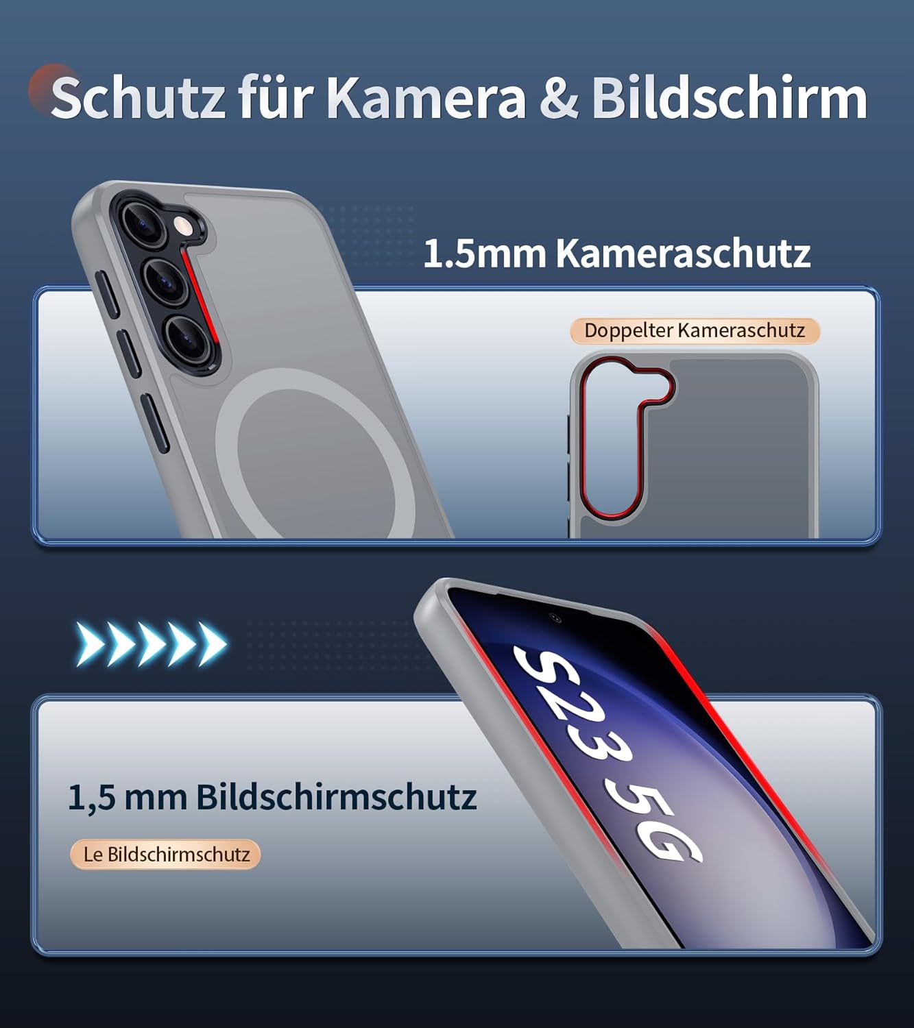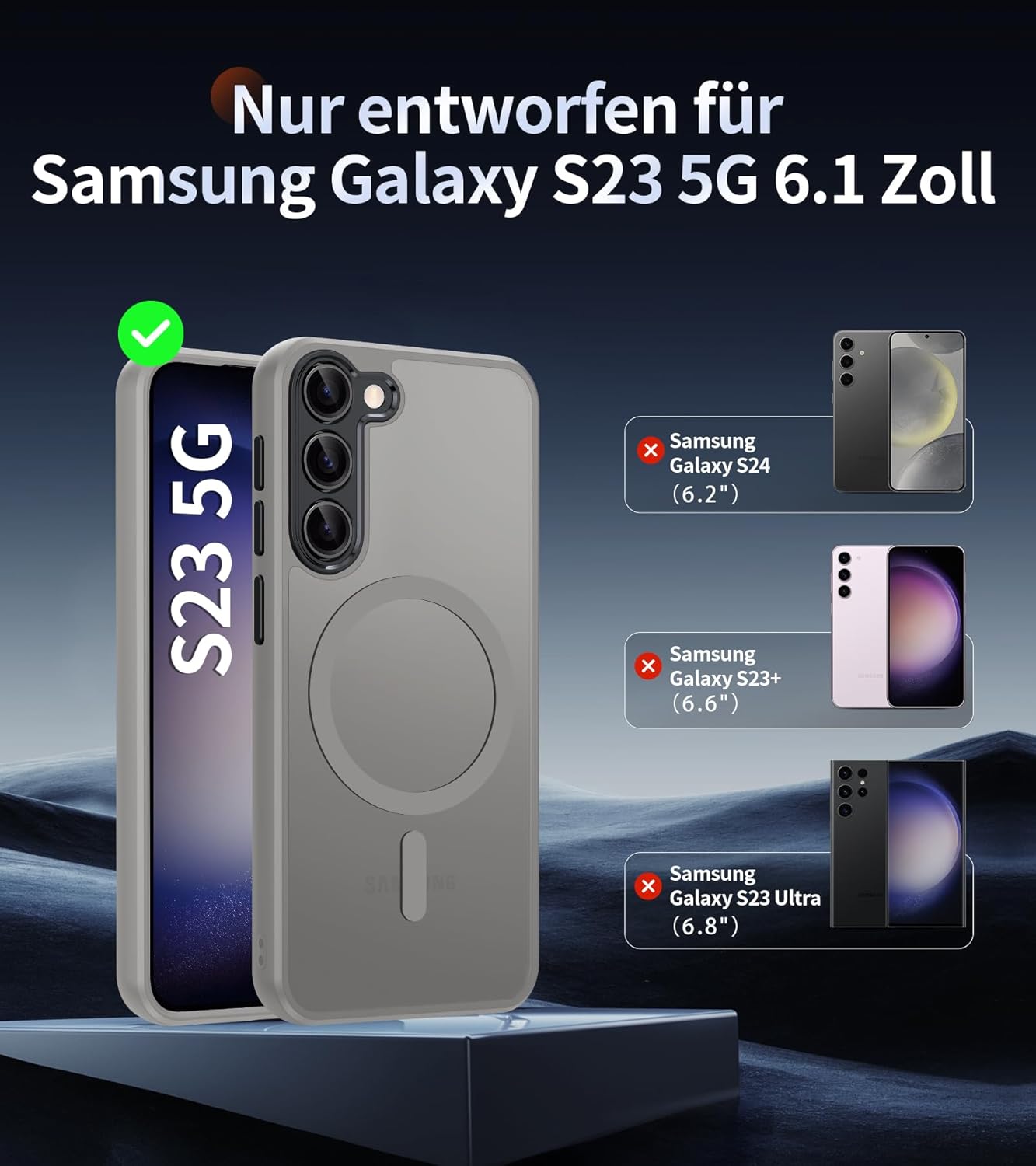 • Съвместимост и професионална поддръжка: перфектен дизайн, съвместим с калъфа за мобилен телефон Samsung Galaxy S23 (6,1 инча), всички изрези са прецизно изрязани според оригиналния мобилен телефон. Този магнитен калъф за мобилен телефон включва 2 защитни филма. -